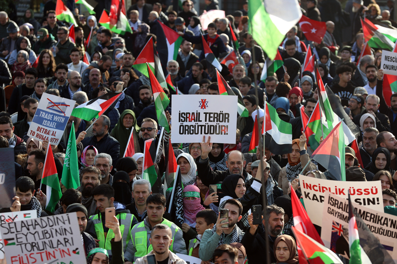 Eyleme katılanlar, İsrail'i protesto edip Filistin'e destek veren dövizler taşıyarak sloganlar attı. Kalabalık daha sonra Ayasofya-i Kebir Cami-i Şerifi'ne yürüdü. Burada Kur'an-ı Kerim ve dualar okundu.