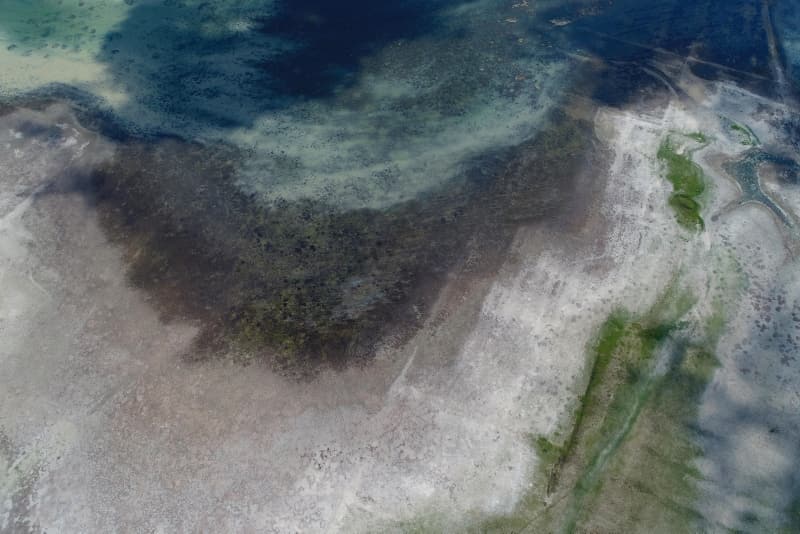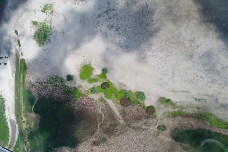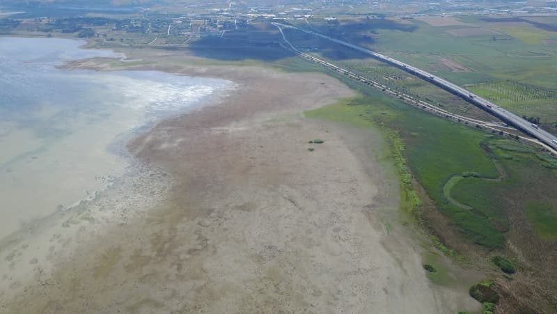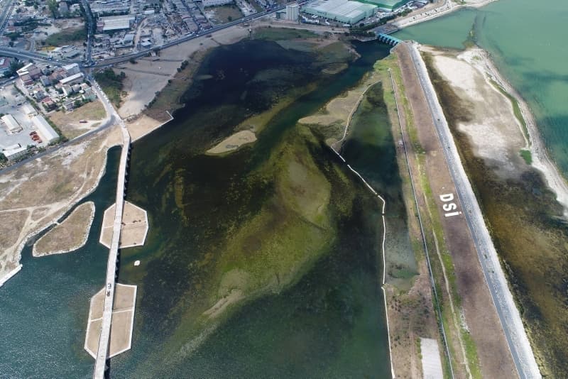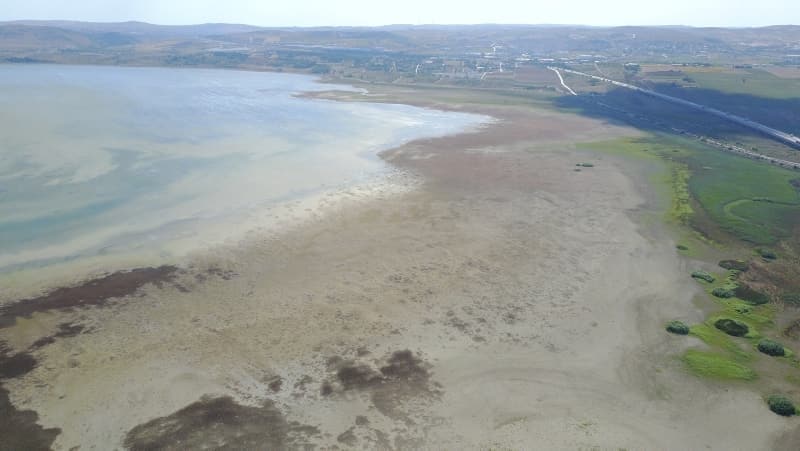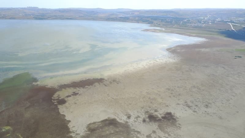 İSKİ verilerine göre Büyükçekmece Gölü’nün su seviyesi yüzde 30 seviyesine düştü. Yüzlerce metre suların çekildiği alan havadan görüntülendi.