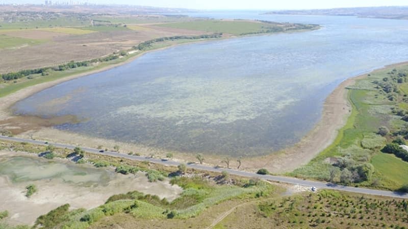 İstanbul’un önemli su kaynaklarından olan Büyükçekmece Gölü’nde su seviyesi yüzde 30 seviyesine düştü. Yüzlerce metre suların çekildiği gölün havadan çekilen görüntüsü ise kuraklığı gözler önüne serdi.