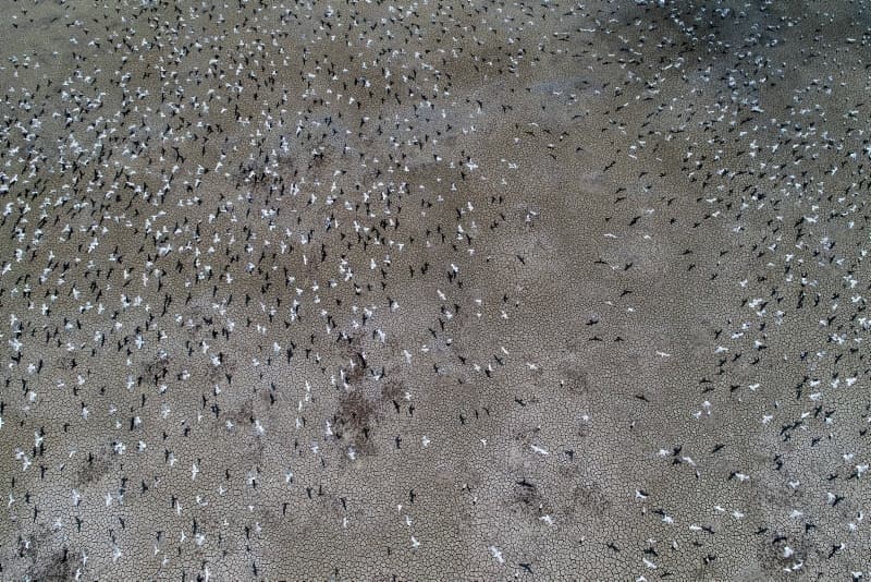 Ayrıca suların çekildiği alanda kuşların tünediği ve çobanların hayvanlarını otlattığı da görüldü.