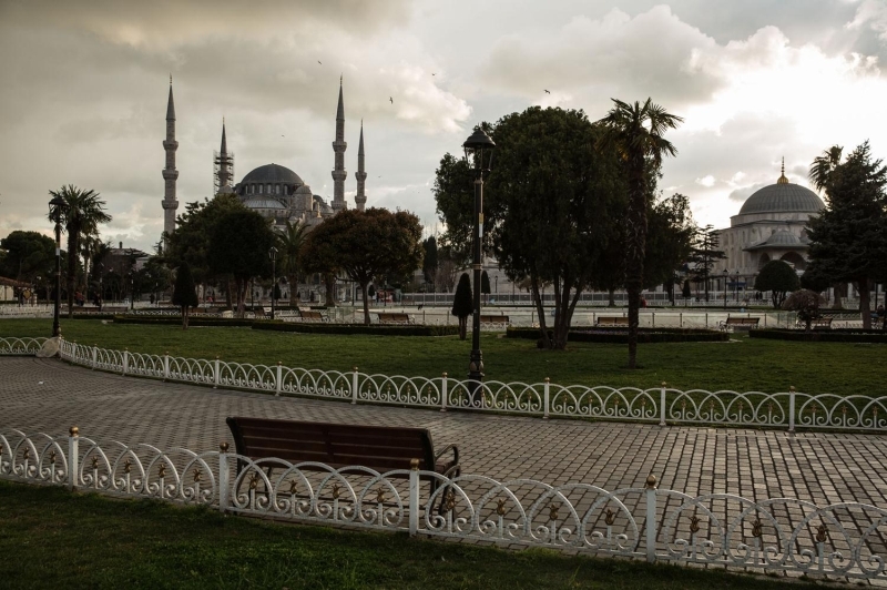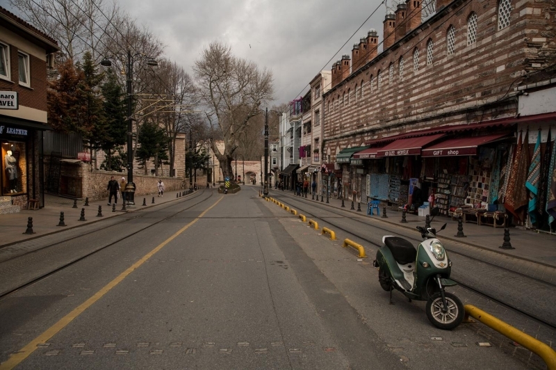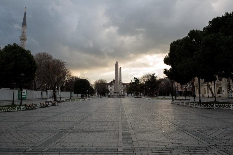 İstanbul'da koronavirüs tedbirleri gereği vatandaşlar sokağa çıkmayınca meydanlar boş kaldı.