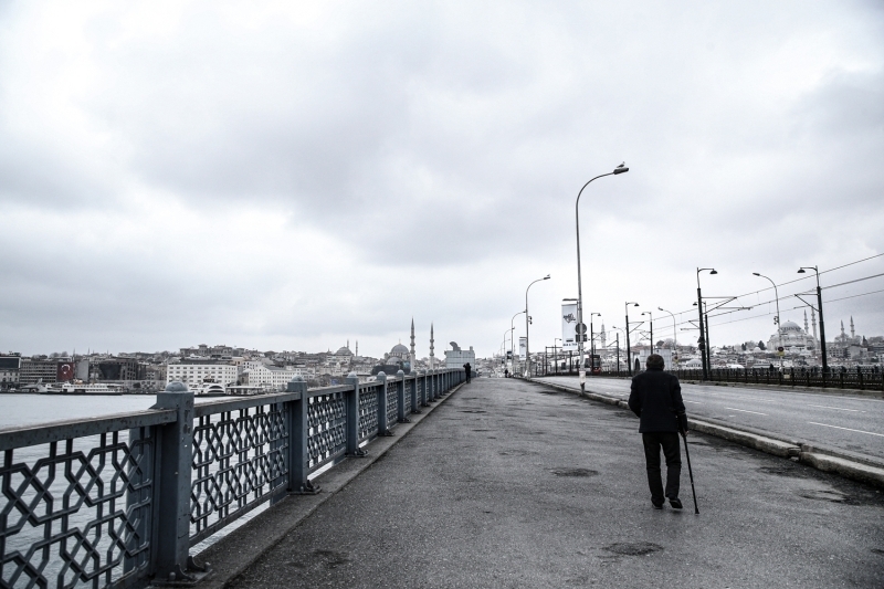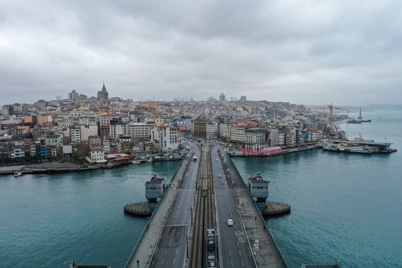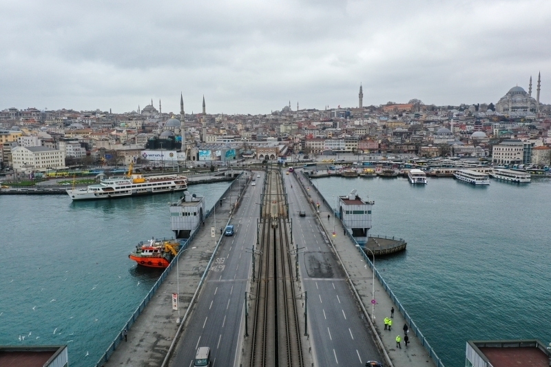 Galata Köprüsü'nde de sessizlik hakimdi.