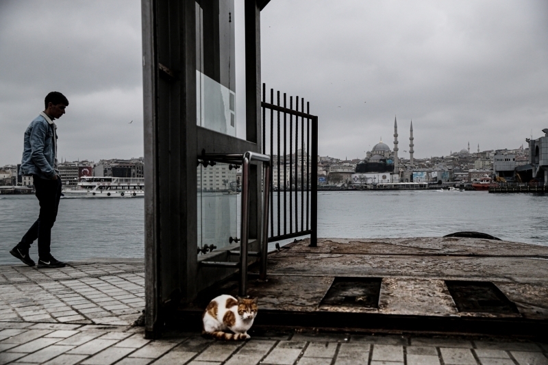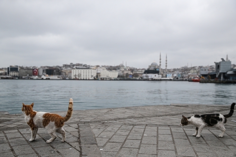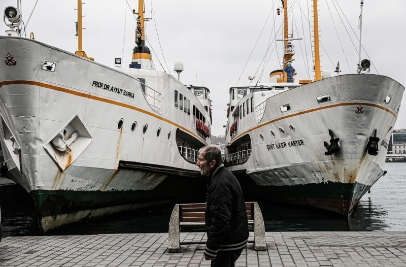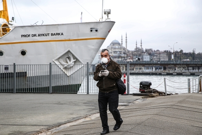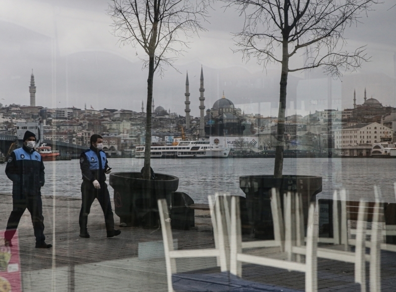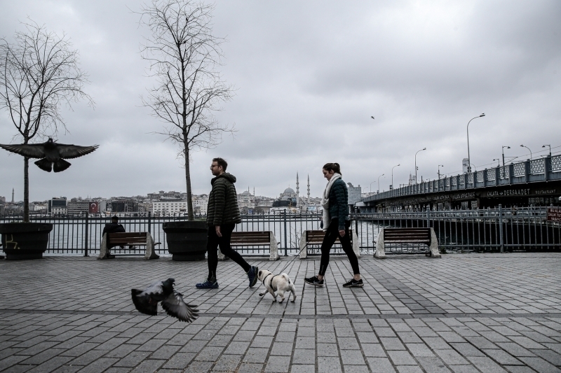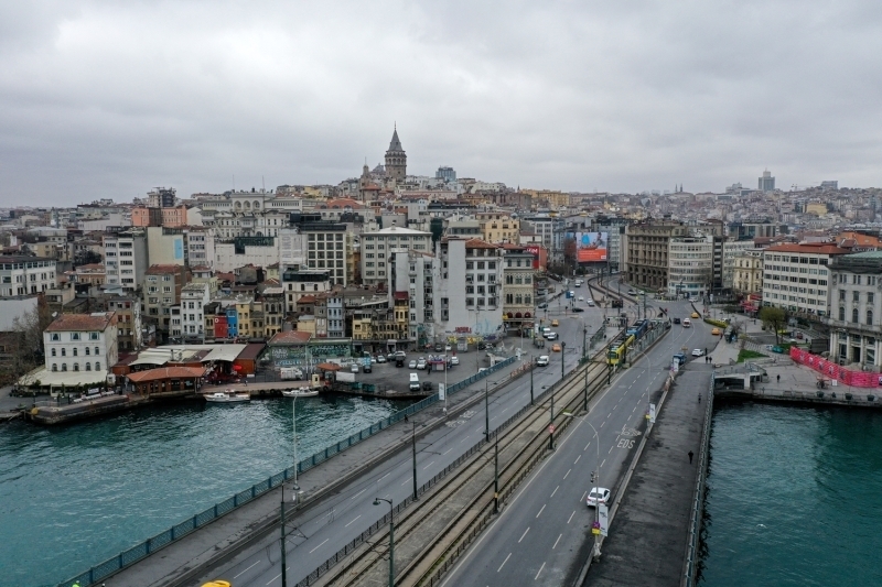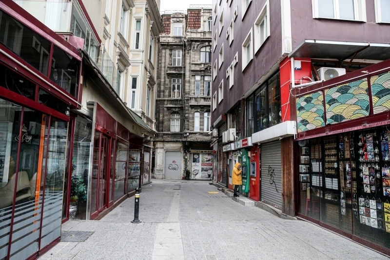 Karaköy'de de insan yoğunluğu görülmedi. Dışarı çıkan vatandaşların ise maske ve eldiven taktıkları gözlemlendi.