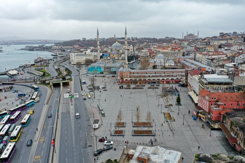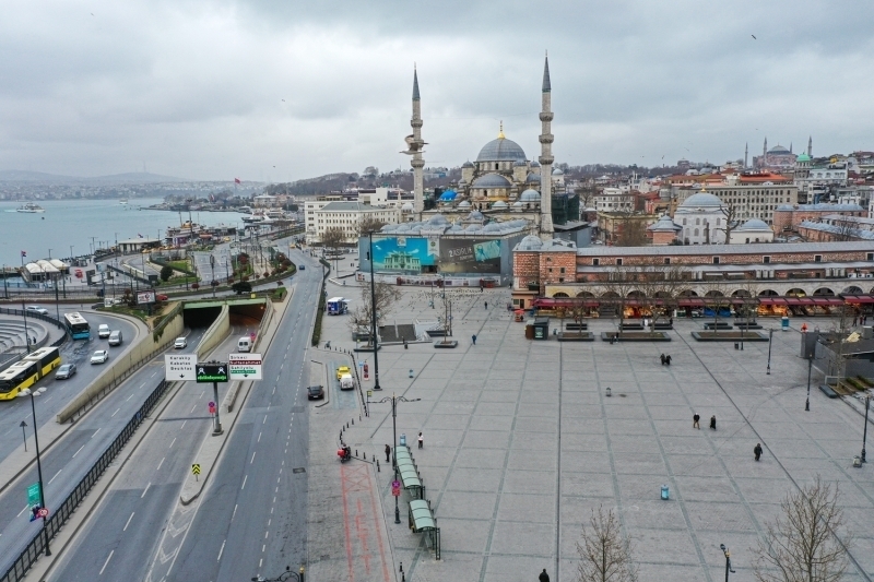 Bu kapsamda Eminönü Meydanı'nda insan yoğunluğunun olmadığı görüldü.