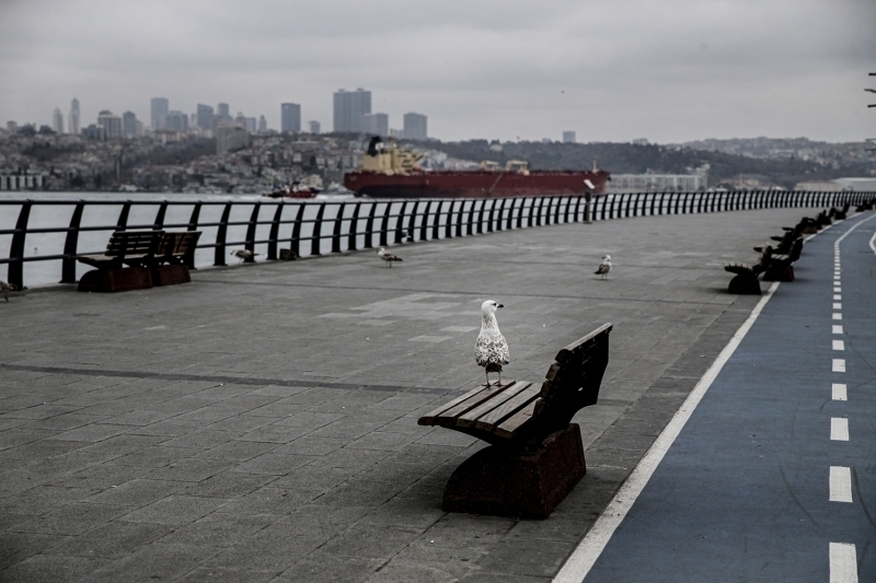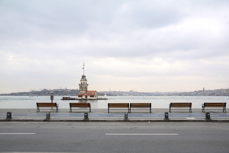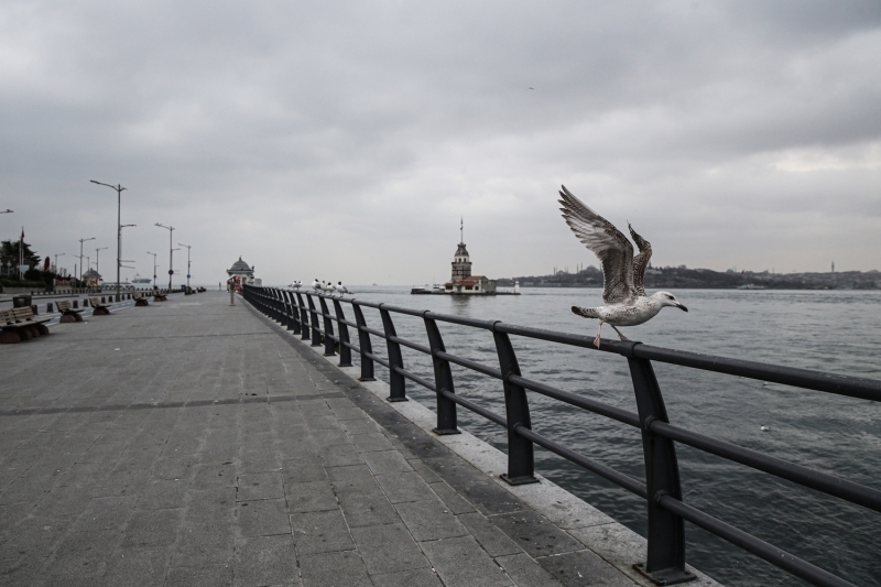 Üsküdar sahili ve Kız Kulesi çevresi tenhalaştı.