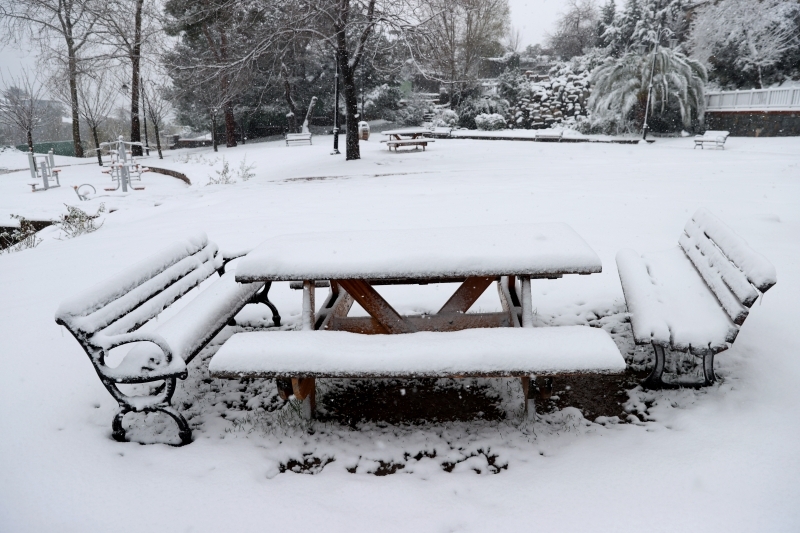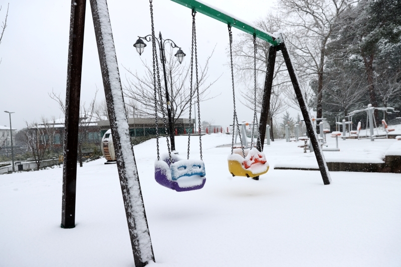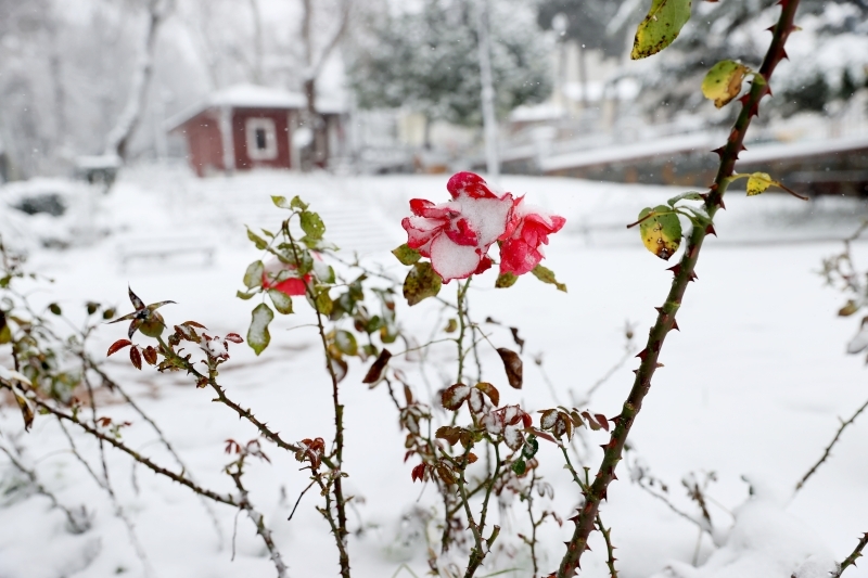 Yağış nedeniyle yeşil alanlar, parklar ve araçlar beyaz örtüyle kaplandı.