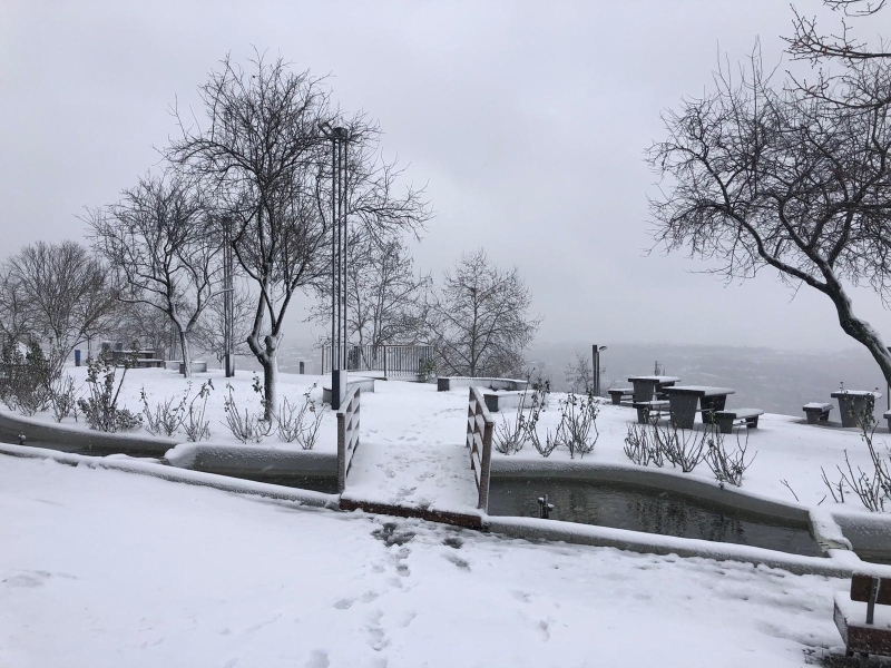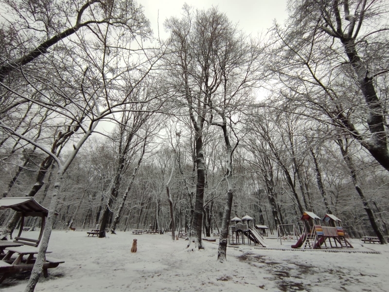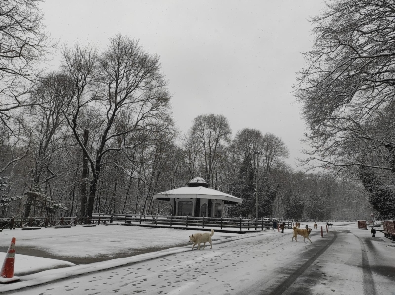 Anadolu Yakası'nda kar yağışı etkisini sürdürürken, Aydos ormanı beyaza büründü. Kentin yüksek kesimleri karla kaplandı.