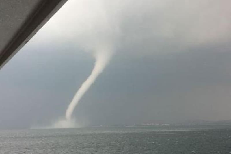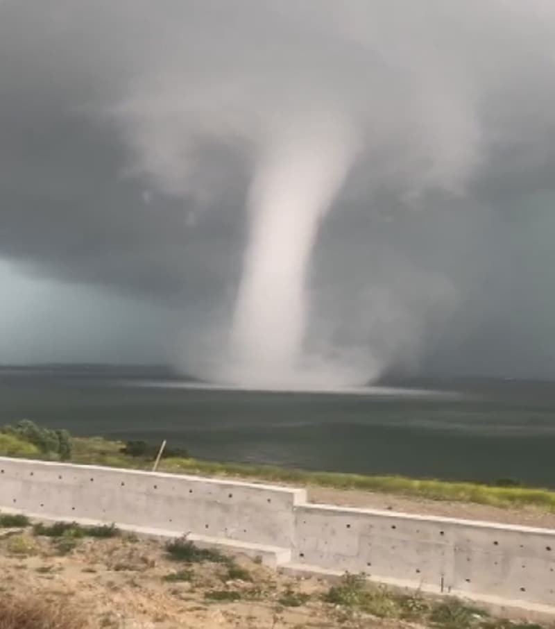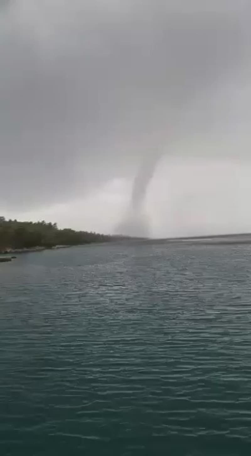 Yoğun rüzgar ile ortaya çıkan, denizden sahile ilerledikten kısa bir süre sonra kaybolan hortum, vatandaşlar tarafından görüntülendi.