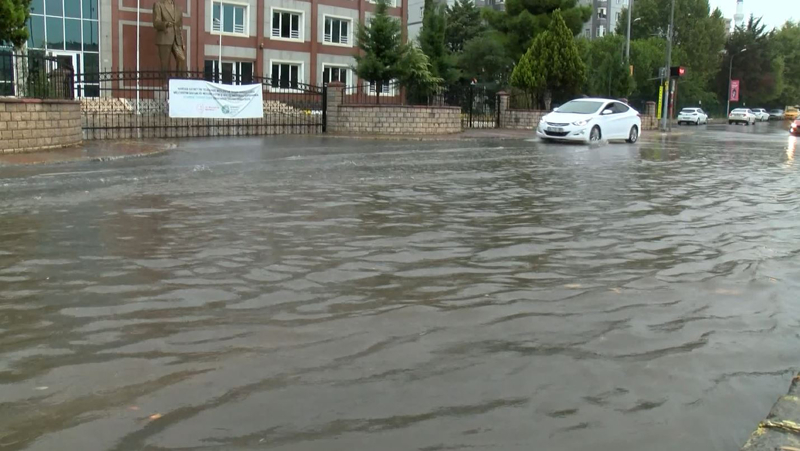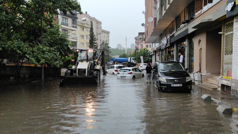 Su birikintilerinden dolayı bazı bölgelerde araçlar ilerlemekte güçlük çekti.