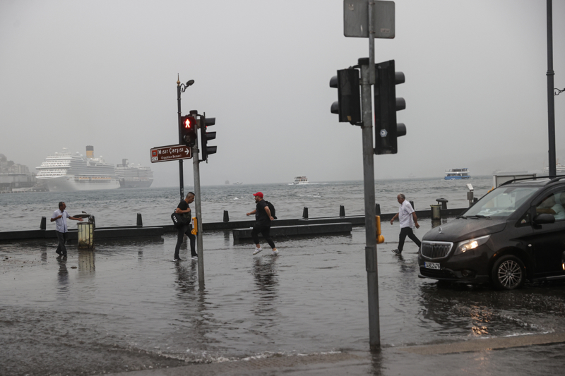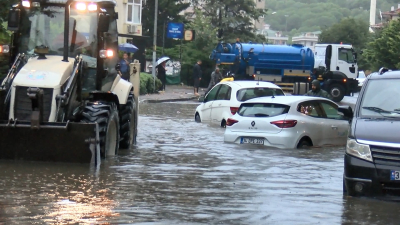 Sabah saatlerinde etkili olan gök gürültülü şiddetli yağış nedeniyle Beşiktaş'ta yollarda su birikintileri oluşurken, bazı sürücüler yolda kaldı.