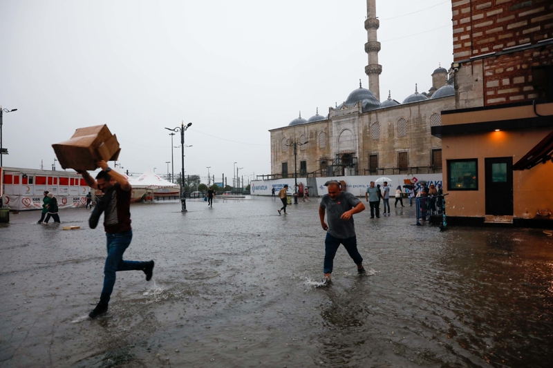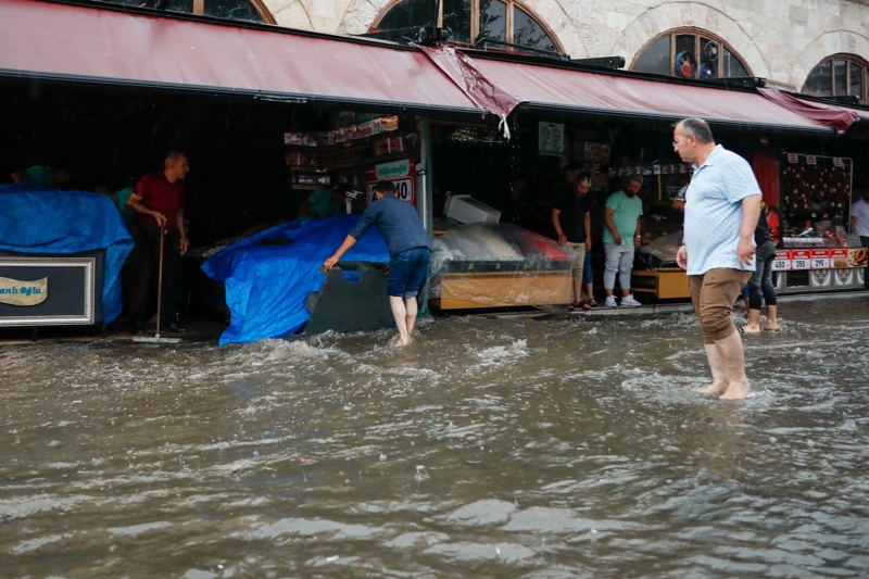 Sağanak yağış nedeniyle Eminönü, Mısır Çarşısı ve Kapalı Çarşı'da dükkanları su bastı.