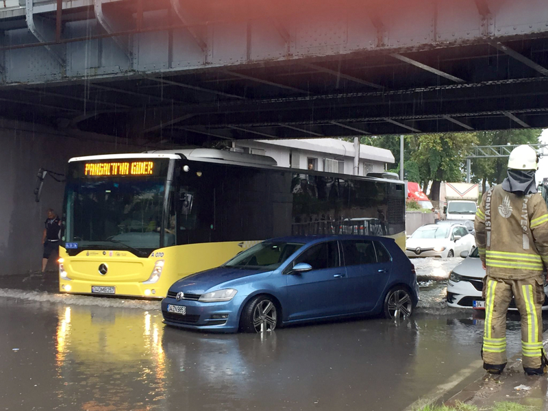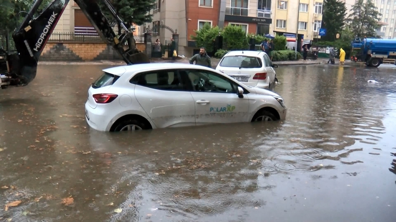 Maltepe'de etkili olan yağış nedeniyle yollar göle döndü. Araçlar mahsur kaldı.
