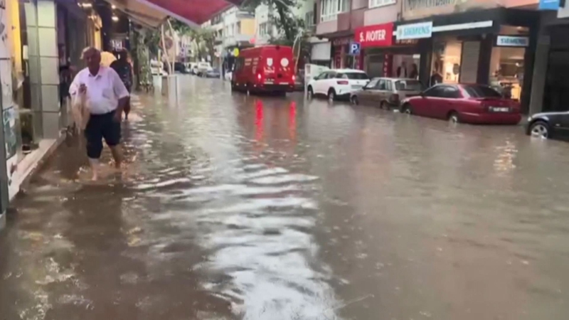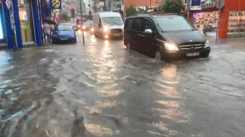 Anadolu Yakası'nda aniden bastıran yağış nedeniyle Maltepe'de yollar kısa sürede göle döndü.
