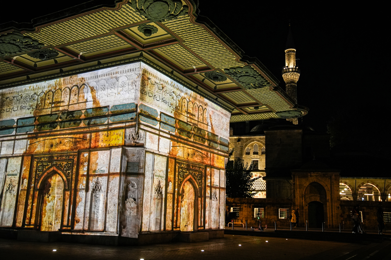 Kültür ve Turizm Bakanlığı koordinasyonunda düzenlenen 'İstanbul Kültür Yolu Festivali' kapsamında Tophane Çeşmesi'nde mapping gösterileri gerçekleştirildi.