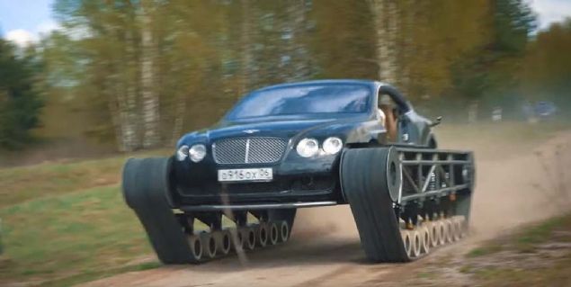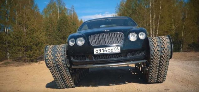 Rusların otomobillerin üzerinde yaptığı deneysel çalışmalara bir yenisi eklendi. Bentley Continental GT'ye palet takarak gelişmiş bir arazi aracına dönüştürdüler.