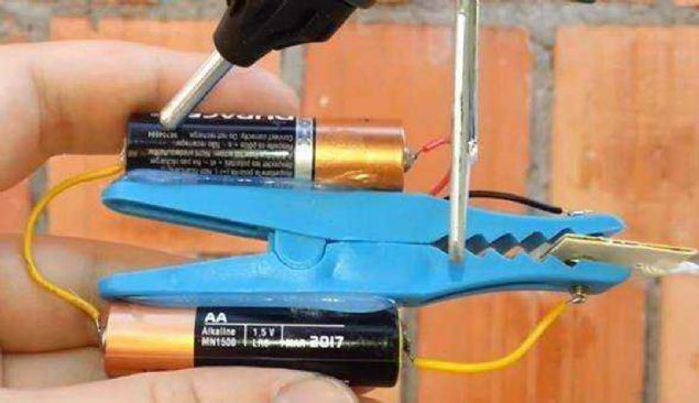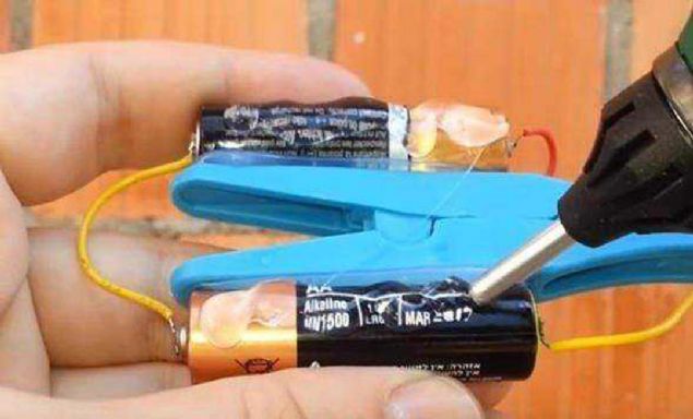 Diğer pili de aynı şekilde mandalın diğer yüzüne yapıştırıyoruz.