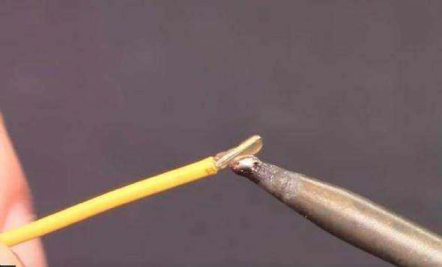 Daha sonra lehim tüpüne kabloları bir bir batırıyoruz.
