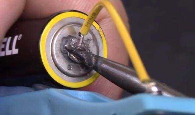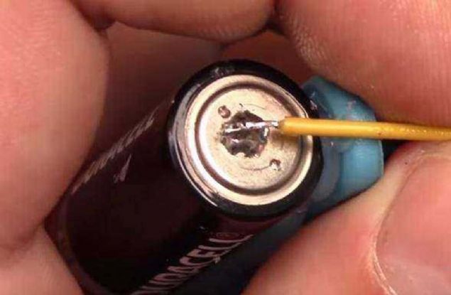 Daha sonra elimizdeki AA pili üzerine yapıştırıyoruz.