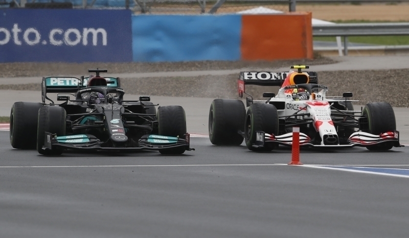 Red Bull pilotu Sergio Perez ile Lewis Hamilton arasında kıyasıya bir rekabet yaşandı.