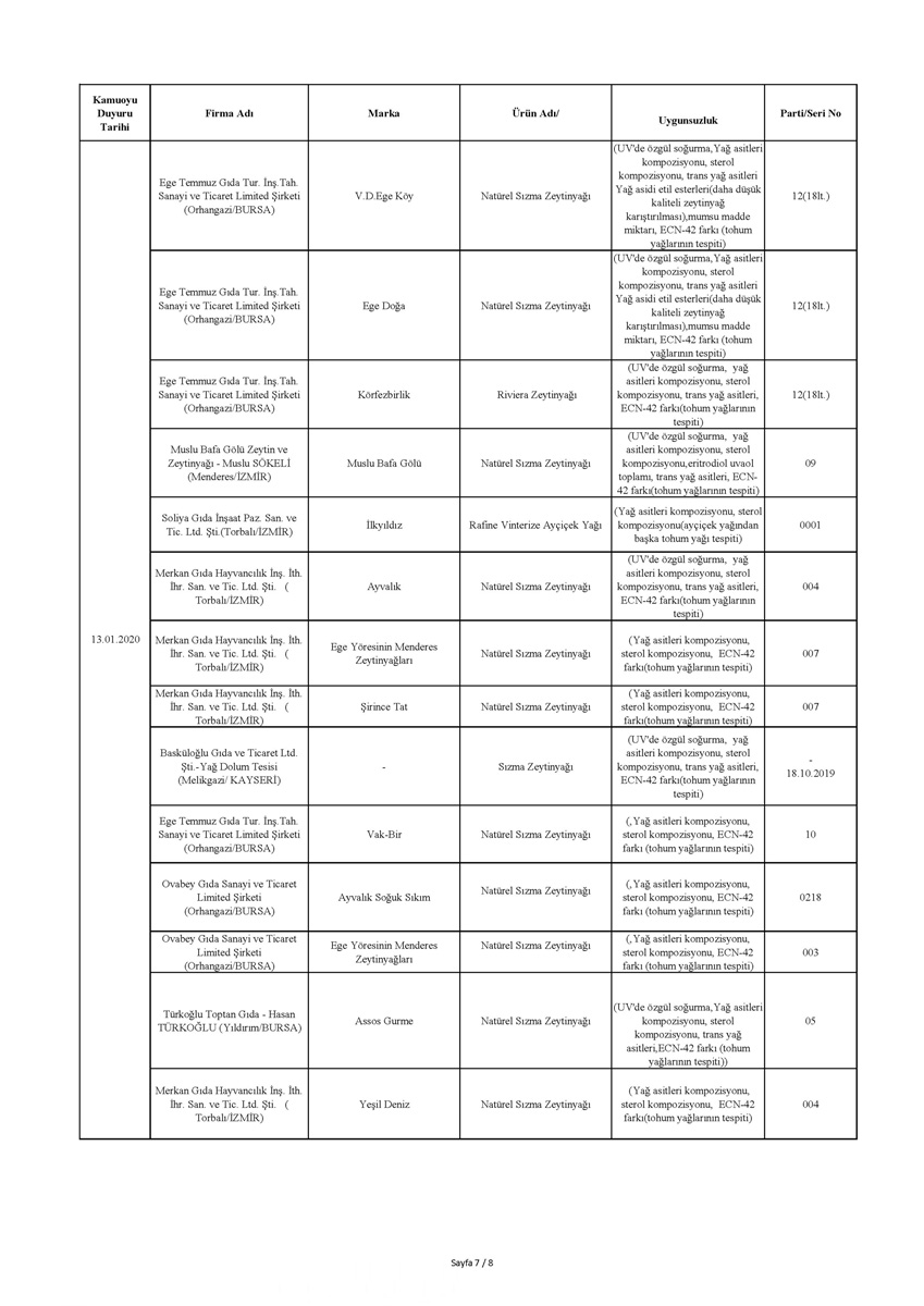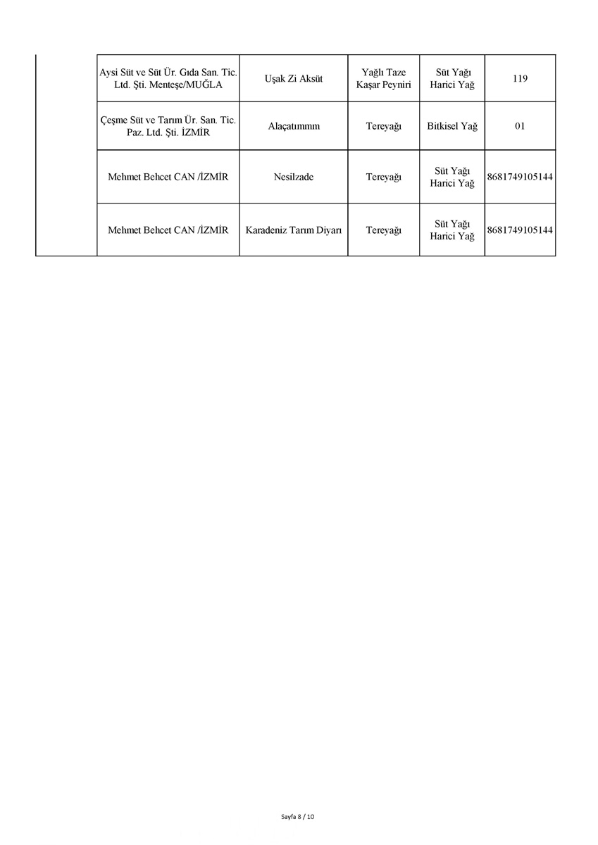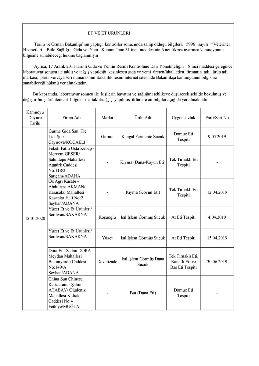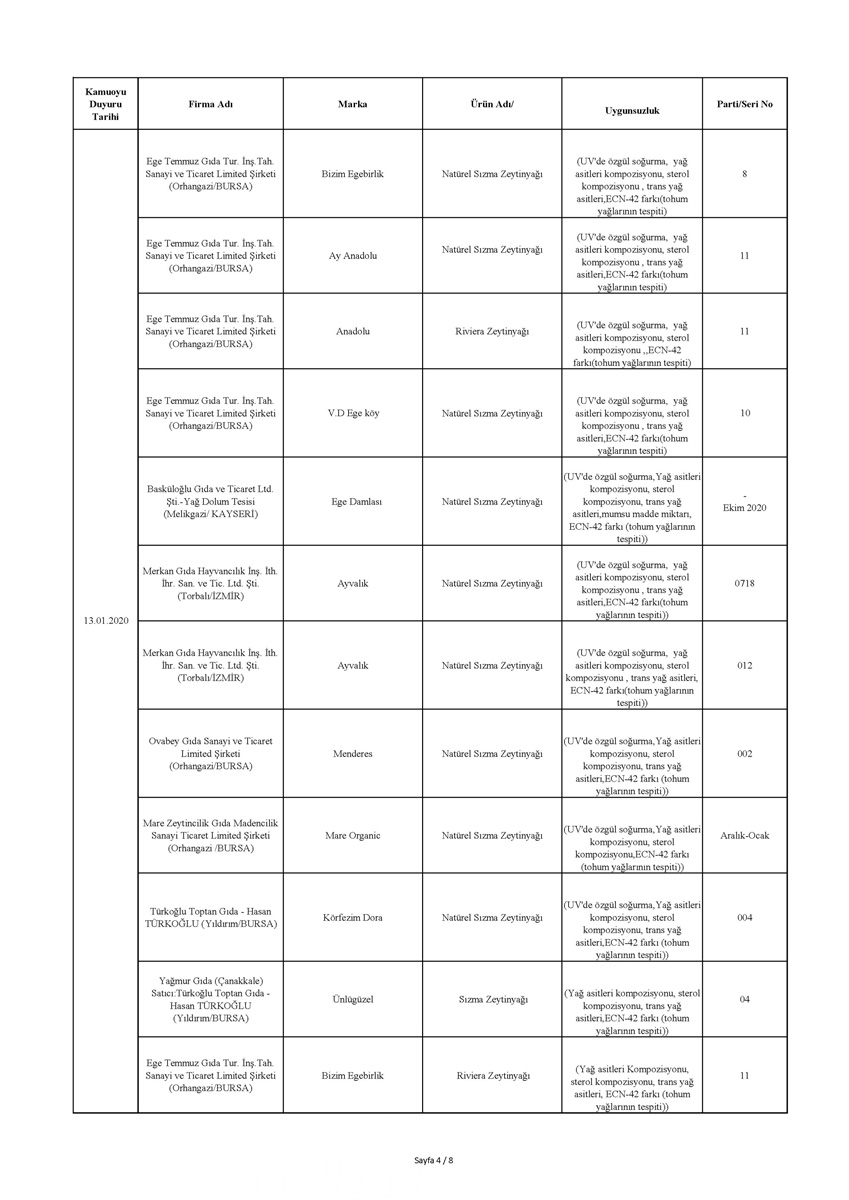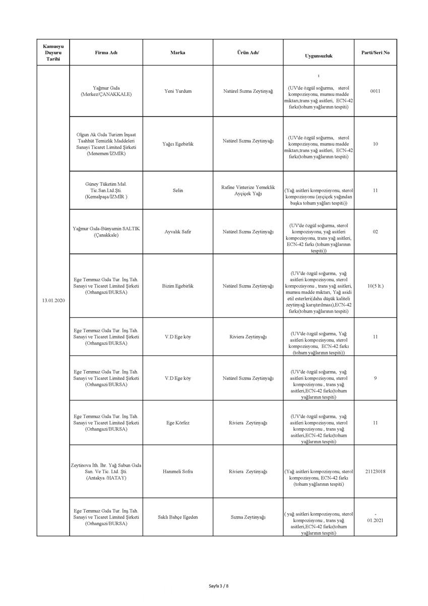 Tarım ve Orman Bakanlığı, taklit, tağşiş veya ilaç etken maddesi tespit edilen toplam 229 firmaya ait 386 parti ürünü kamuoyuyla paylaştı.