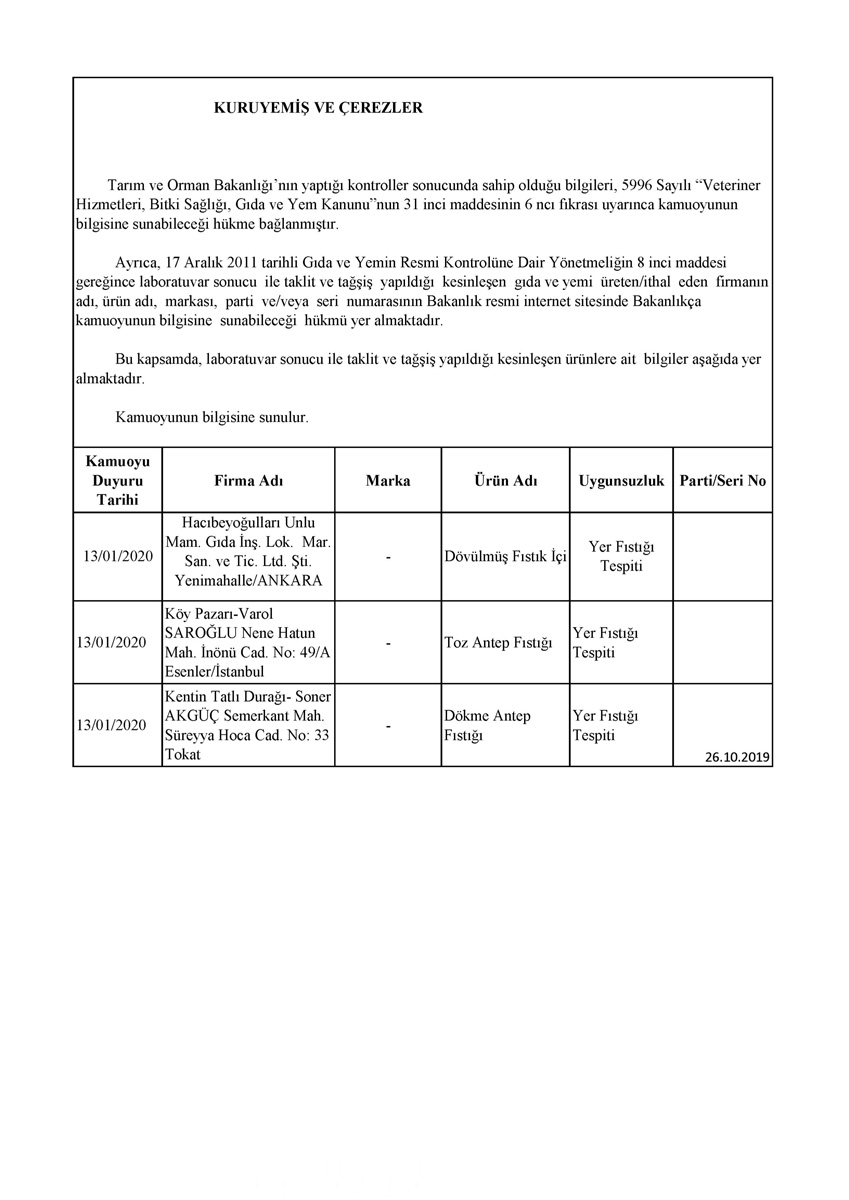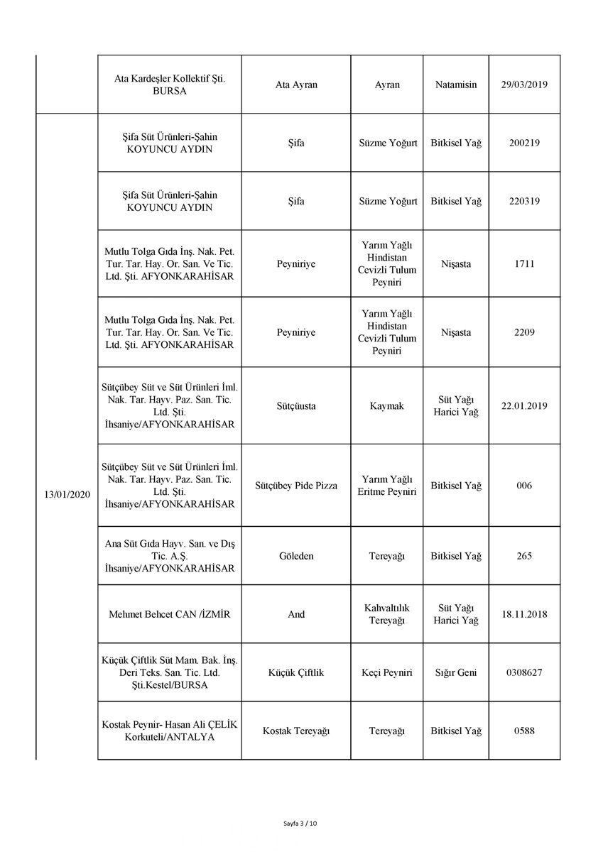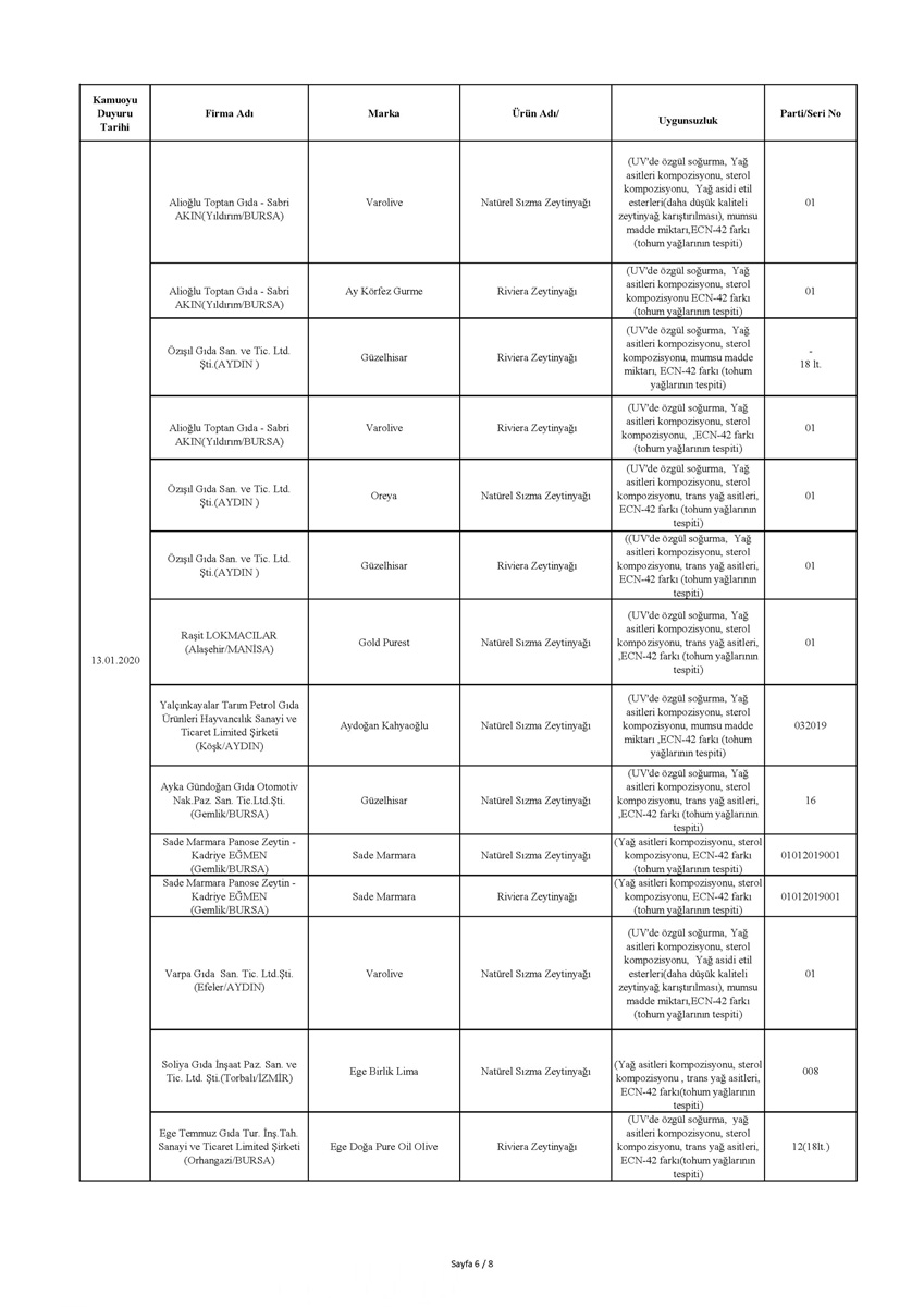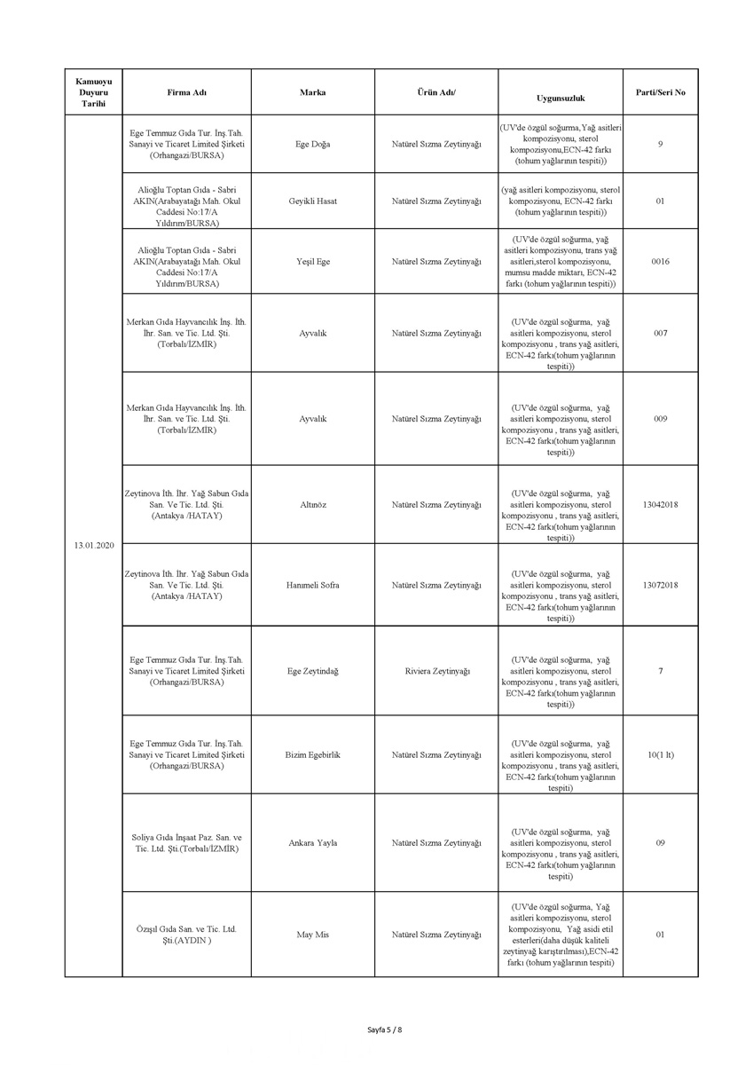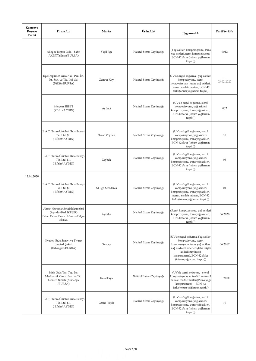 Tarım ve Orman Bakanlığı, taklit, tağşiş veya ilaç etken maddesi tespit edilen toplam 229 firmaya ait 386 parti ürünü kamuoyuyla paylaştı.