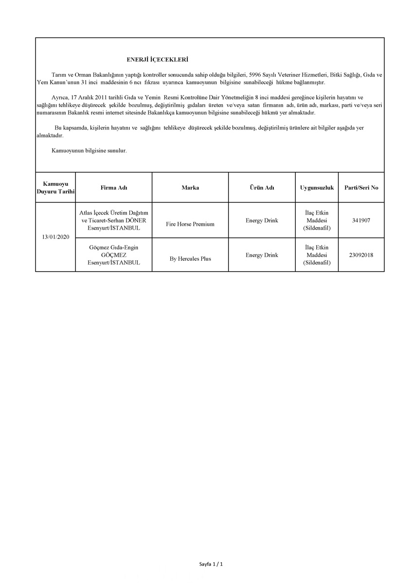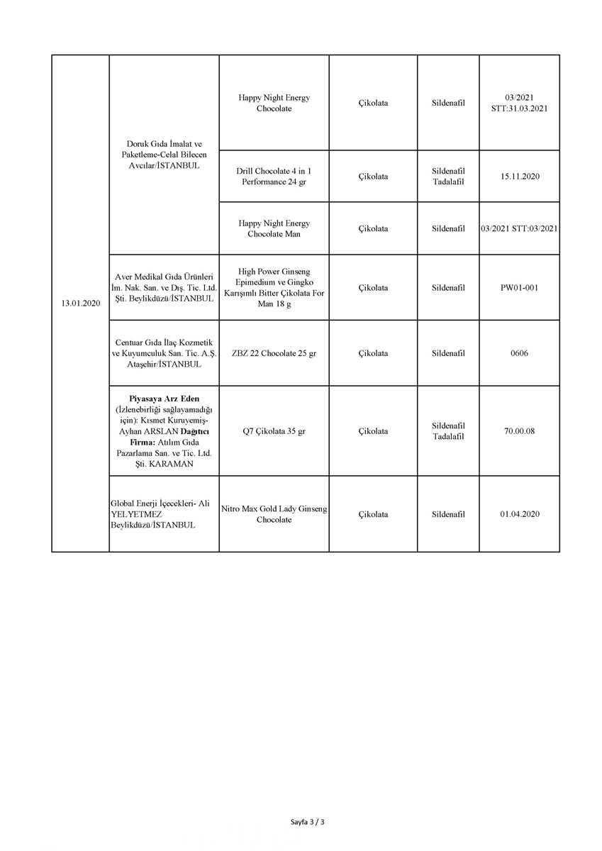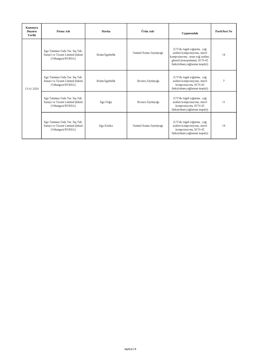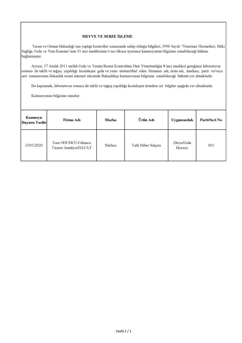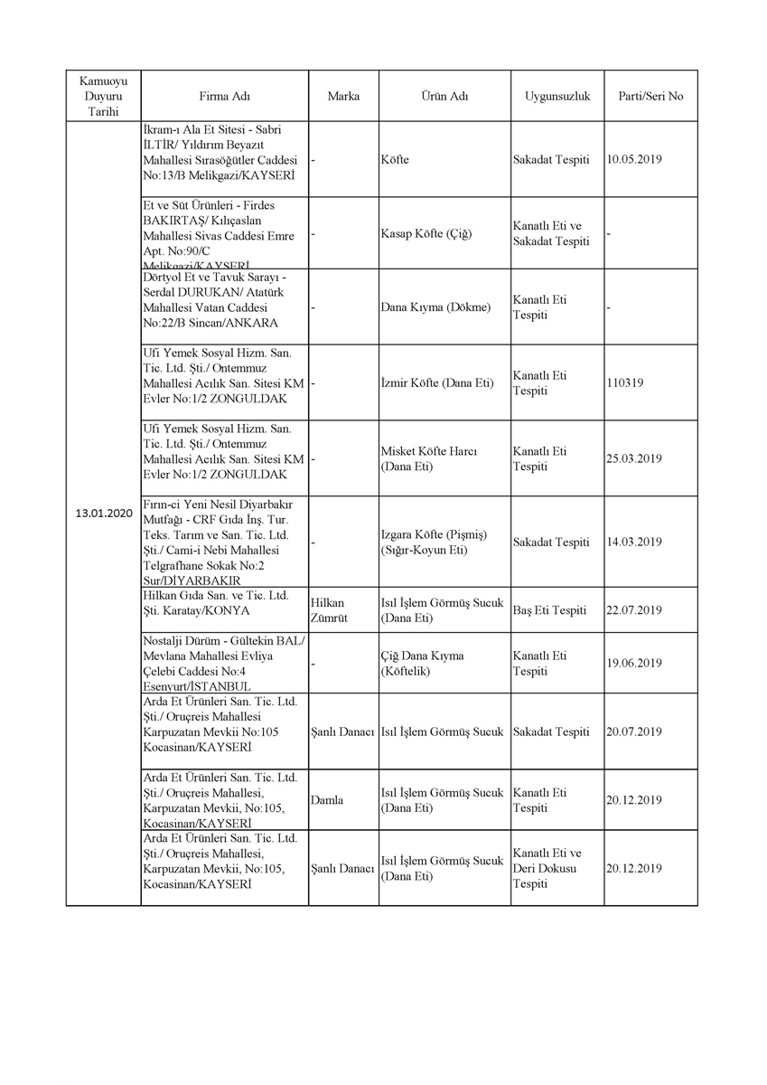 Tarım ve Orman Bakanlığı, taklit, tağşiş veya ilaç etken maddesi tespit edilen toplam 229 firmaya ait 386 parti ürünü kamuoyuyla paylaştı.