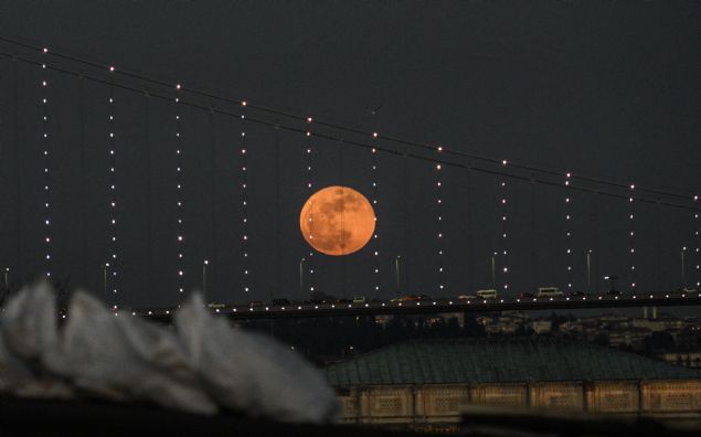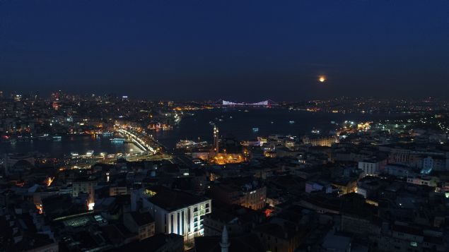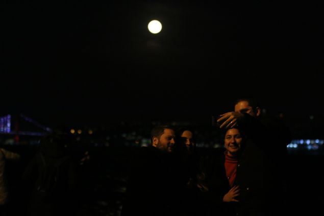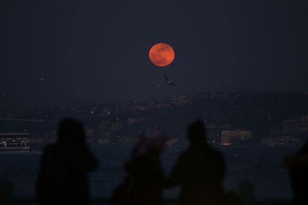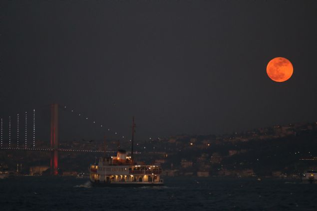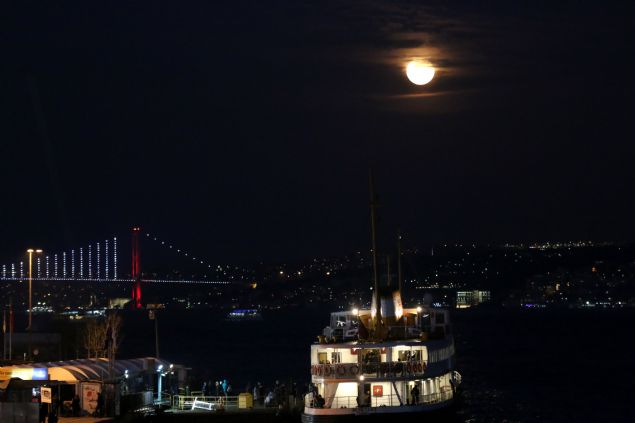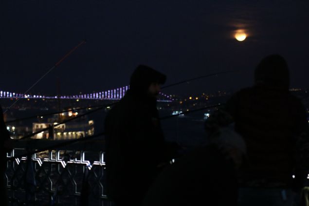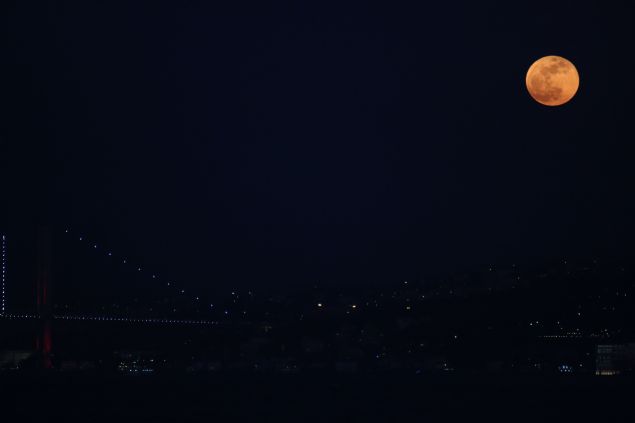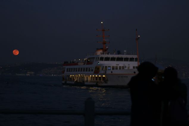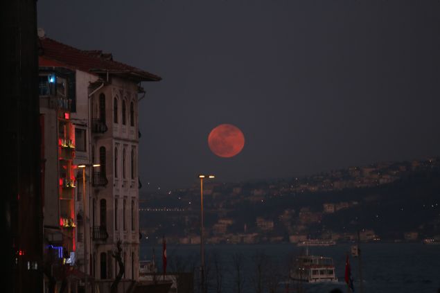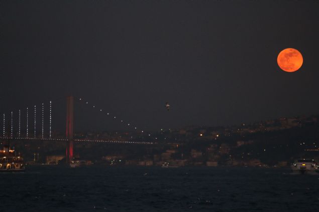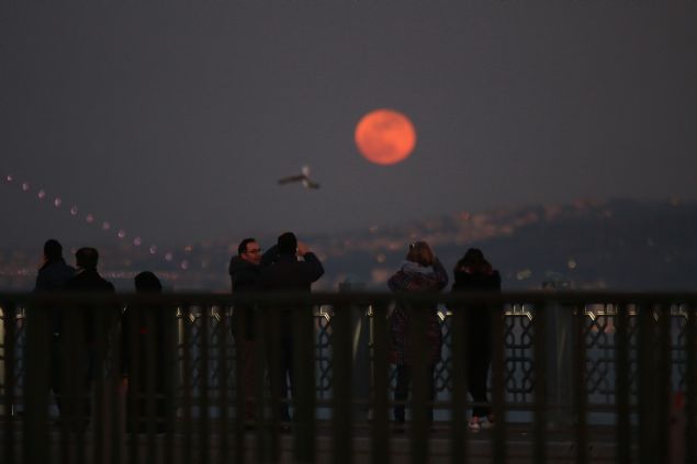 İstanbul'da Kanlı Ay merakla izleniyor. Havanın kararmasıyla birlikte Kanlı Ay saat 18.34 sıralarında kendini gösterdi.