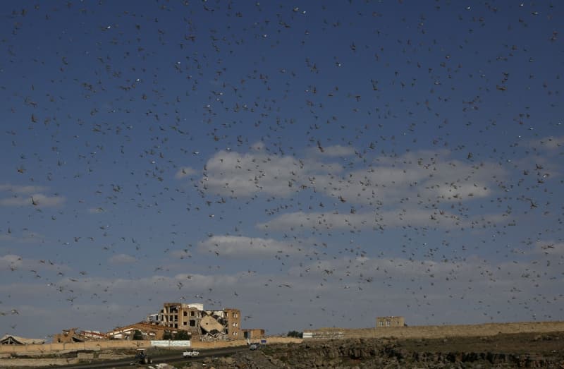 Dünya genelinde yeni tip koronavirüs (Kovid-19) salgınıyla mücadele devam ederken, yeni bir tehdit oluşturan çöl çekirgeleri, Arap Yarımadası'nda ilerleyişini sürdürüyor.