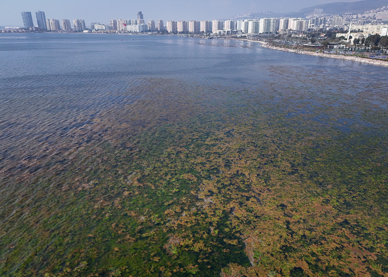 'İlkbaharda güneşin kendini daha fazla hissettirmesi sonucu deniz suyundaki sıcaklığın artışına bağlı olarak algler gibi fotosentez yapan organizmalarda artış gözlenir. Bu, normal bir döngüdür. Ancak İzmir iç körfez gibi karasal baskı sonucu kirlilik ve besin elementlerinin çok fazla olduğu bir bölgede temiz ortam türleri ekosistemden çekilirken bunların yerine besin elementlerini kullanan diğer fırsatçı dediğimiz özellikle yeşil algler artış gösterir. Bu artış sonucunda ortam ötrofik bir hal alır. '