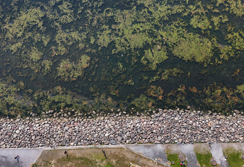 Yosunlar, Bostanlı sahilinde kıyıya yakın bazı noktalarda denizin yüzeyini kapladı.