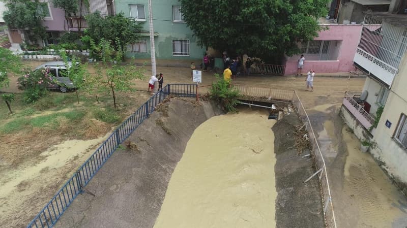 İzmir'in Gaziemir ilçesinde etkili olan sağanakta derenin taşması ve çok sayıda ev ile iş yerinin sular altında kalmasına bölge halkı, tepki gösterdi.