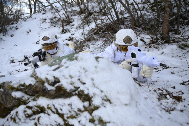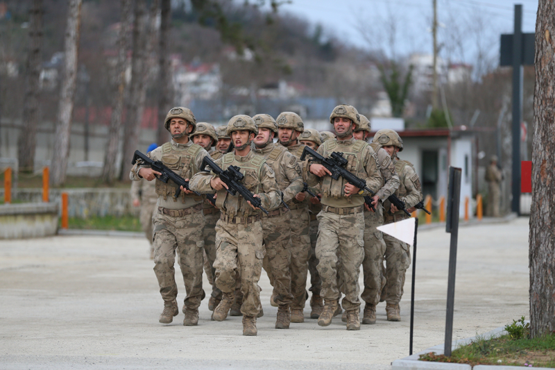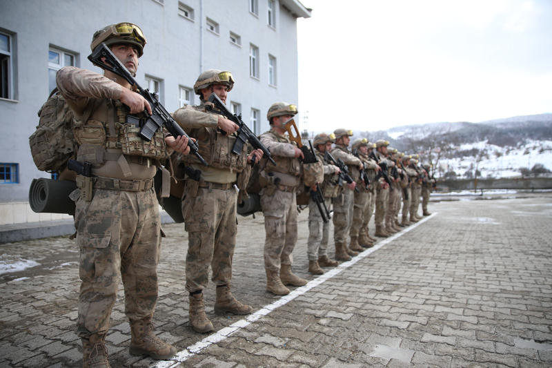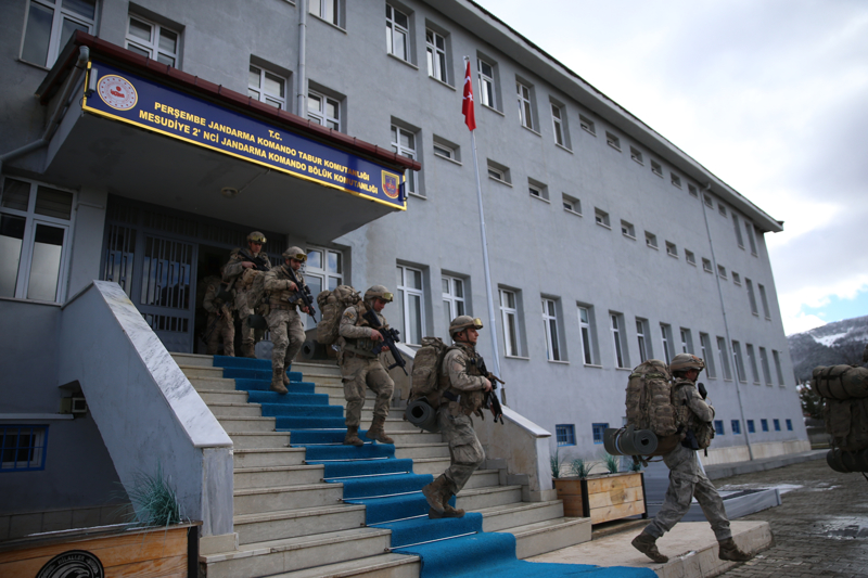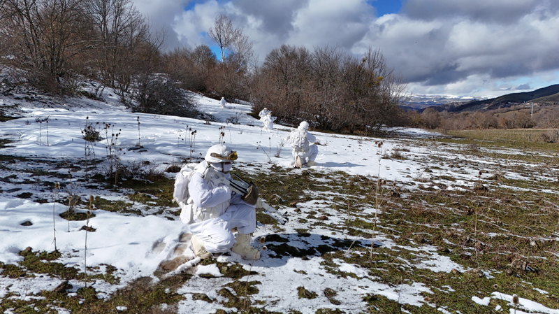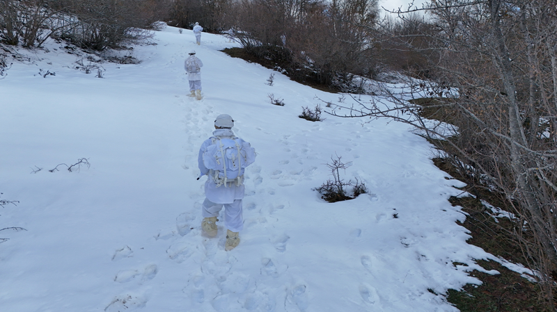 Türkiye'nin en seçkin birlikleri arasında yer alan jandarma komandolar, verilen görevleri zorlu arazi ve hava koşullarında dahi yerine getirebilme kabiliyetini ortaya koyuyor. Ordu'nun Mesudiye ilçesinde gerçekleştirilen tatbikatta, karlı zeminde gerçekleştirilen zorlu intikalde tek bir iz oluşturarak ilerleyen birlikler, kar kamuflajlarıyla zor şartlarda harekat gerçekleştirebilme yeteneklerini ortaya koydu.