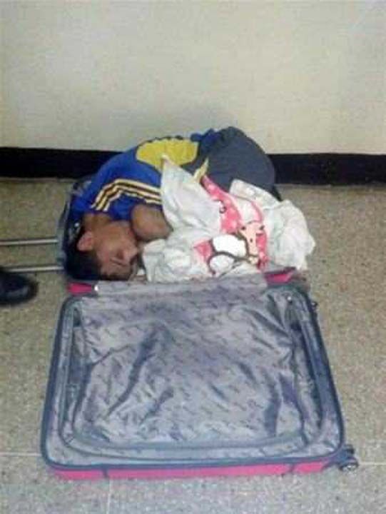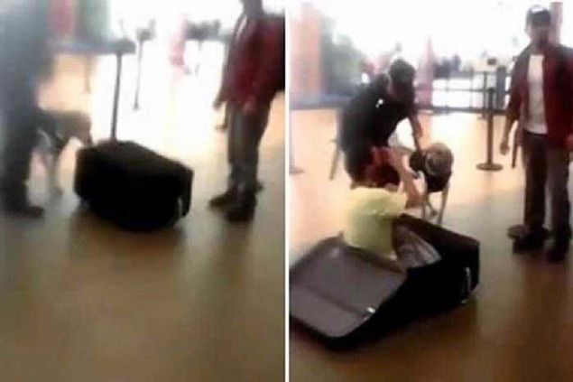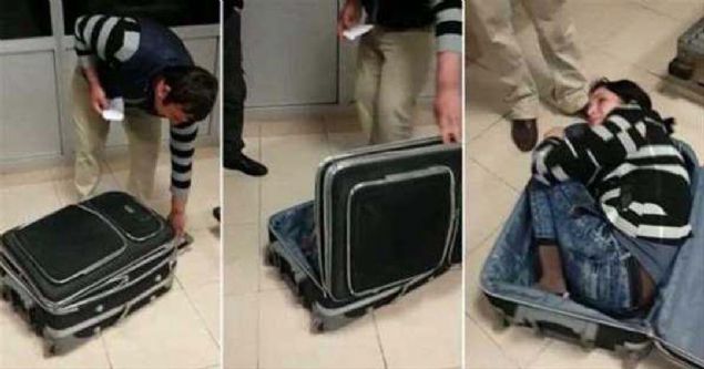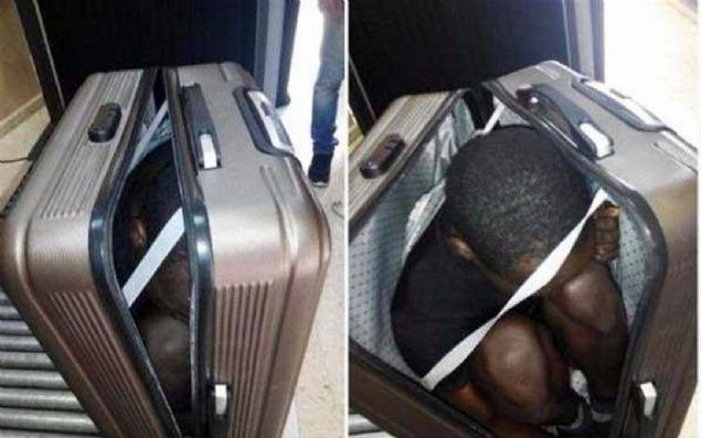 Polisin açıklamasına göre Abou adındaki çocuk, 19 yaşındaki bir kadın tarafından bavul içinde taşınırken bulundu...