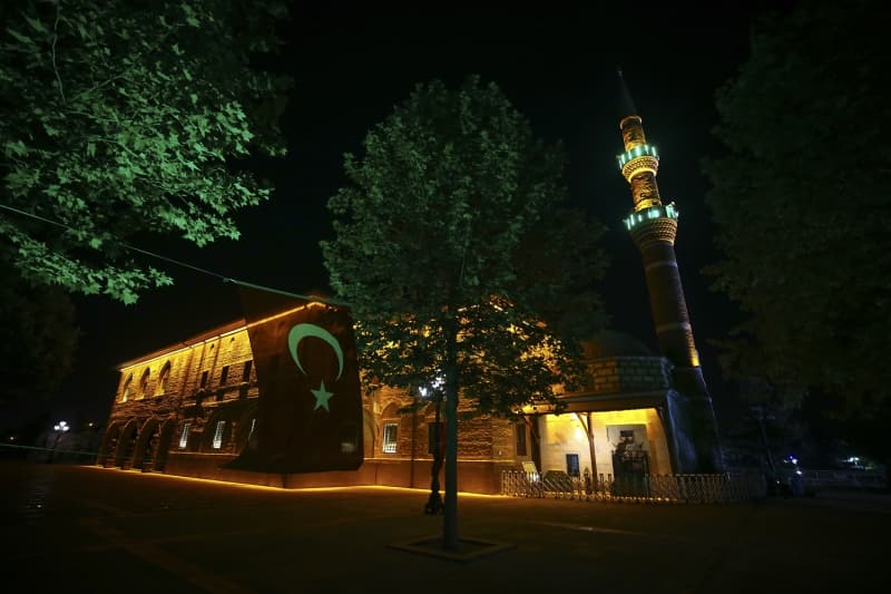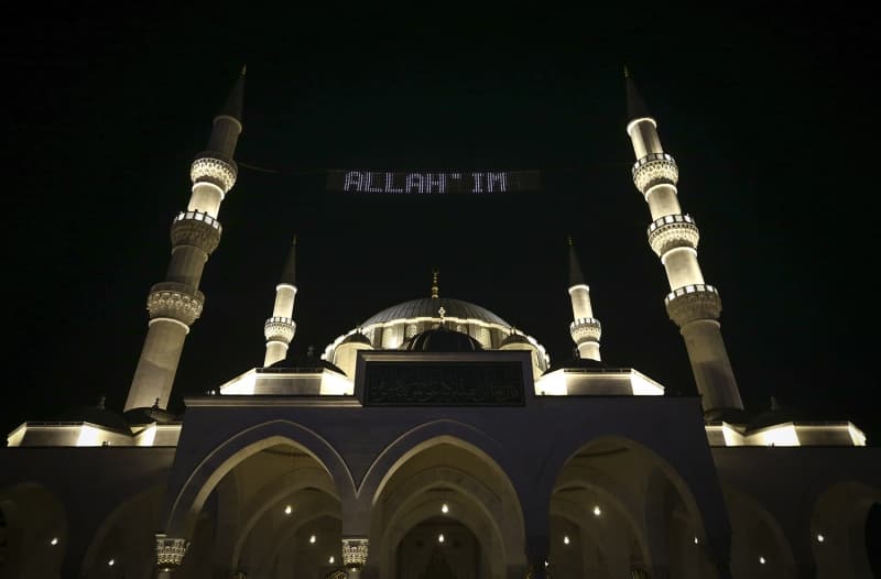 Yeni tip koronavirüs (Kovid-19) tedbirleri kapsamında camilerdeki toplu ibadet ve faaliyetlere ara verilmesi nedeniyle, Kadir Gecesi'nde, Ankara'daki Kocatepe Camisi boş kaldı.