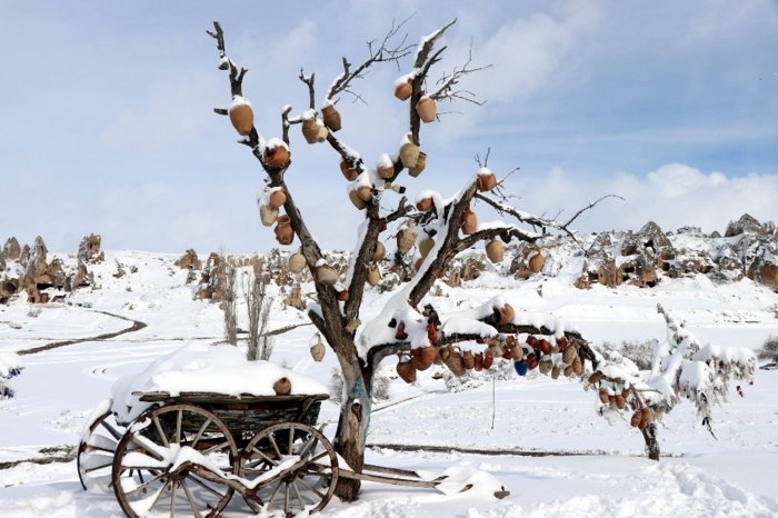 Peribacaları kar yağışı sonrası masalsı görüntüler oluşturdu.