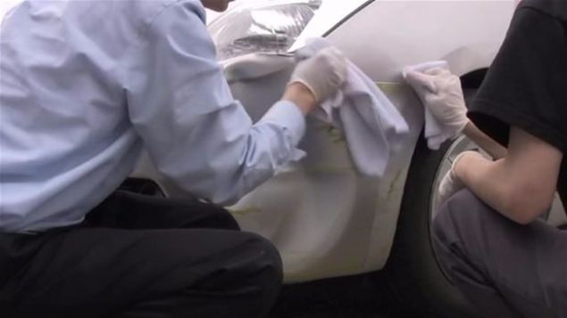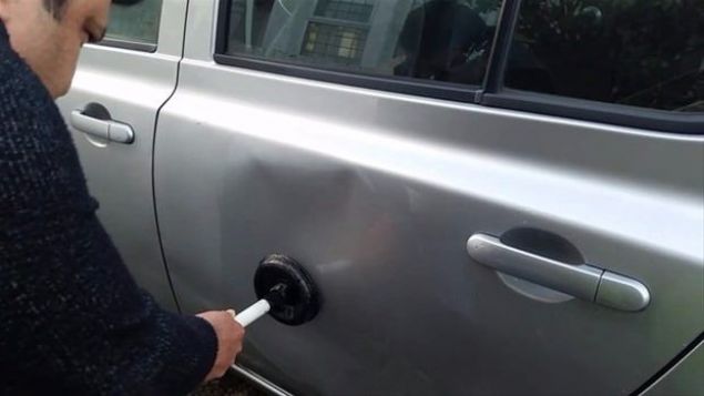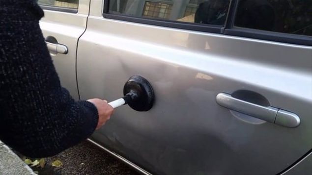 Eğer göçük biraz daha fazlaysa lavabo açacağıyla arabanın iç kısmına baskı uygulayın.