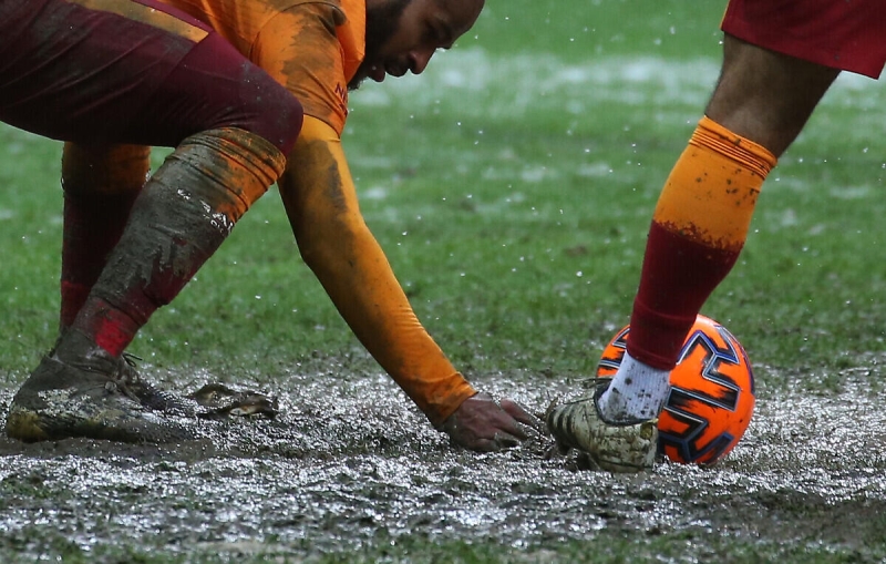 Kar yağışı nedeniyle zemin bir hayli ağırlaşırken penaltı noktasının kar ve çamurla kaplı olması Galatasaraylı futbolcuları harekete geçirdi.