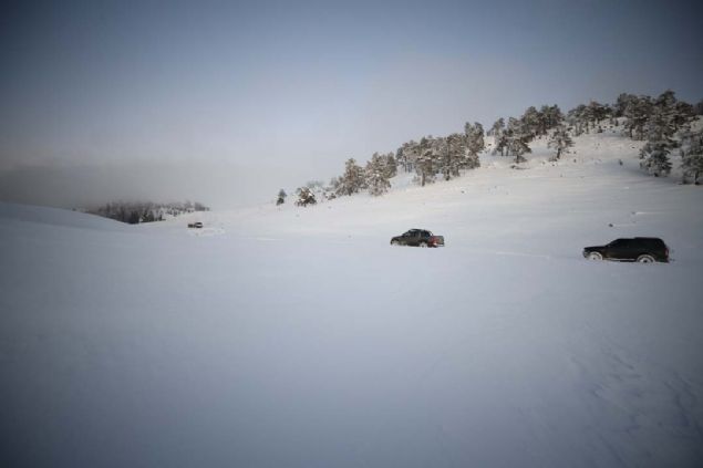 Safari tutkunları, kar kalınlığının yaklaşık 1 metre ölçüldüğü bölgede keyifli vakit geçirdi.