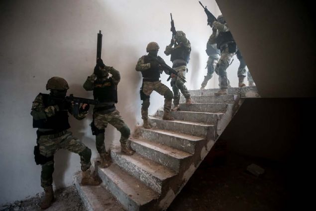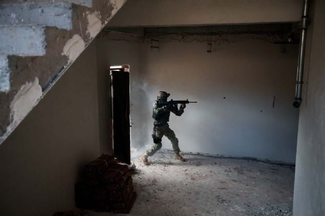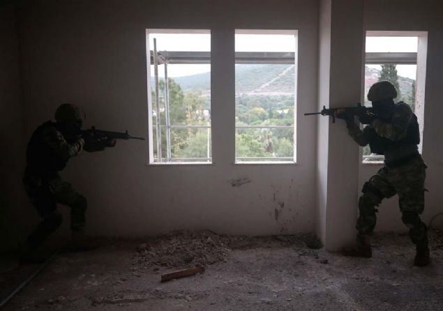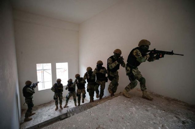 Ateşli silahlarını eğitim alanında ustalıkla kullanan amfibi timleri, gerçekleştirdikleri meskun mahal operasyonunda senaryo gereği içerisinde terör hedeflerinin bulunduğu binaya hızlıca ulaştı.
