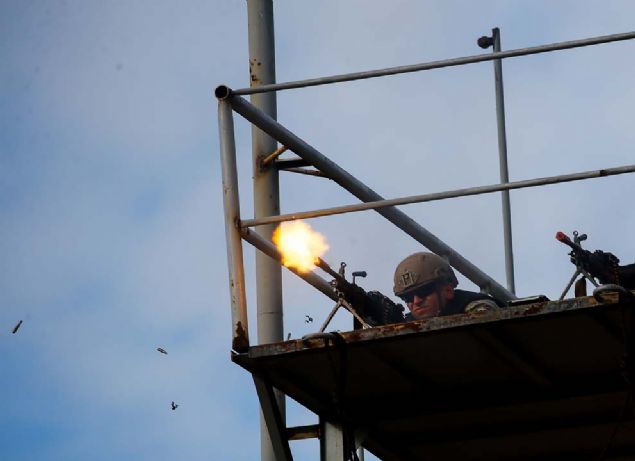Deniz piyadeleri, 'ayakta kalan ölür' sloganıyla düşman hattında sürünerek ve kısa süreli ayakta kalarak ilerledi ve hedefleri yok etti.