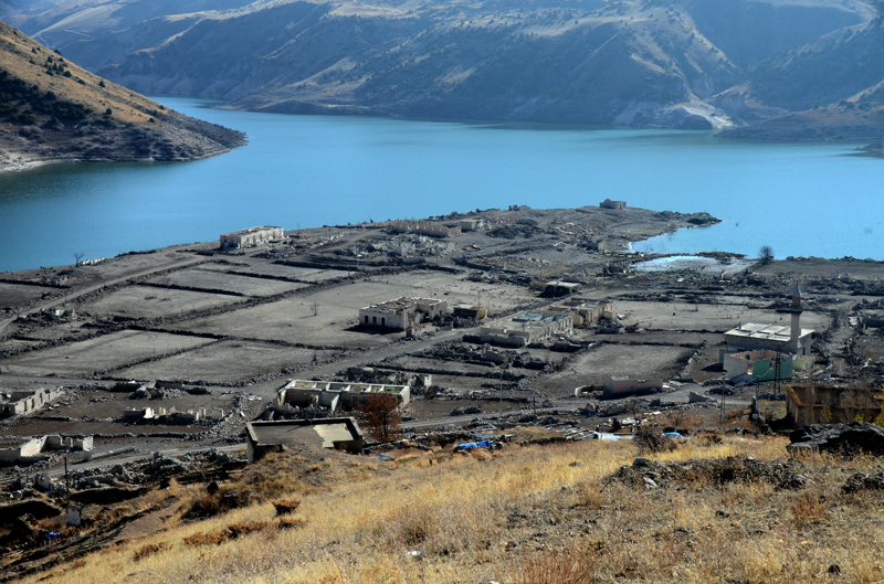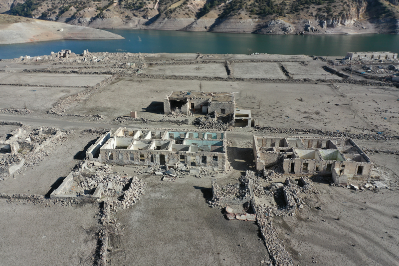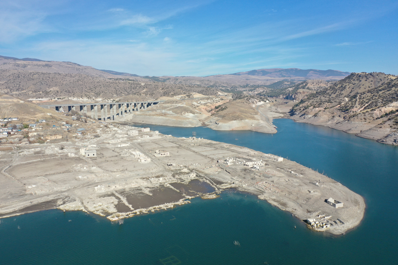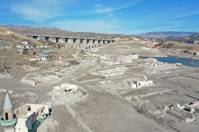 Kars'ta baraj sularının çekilmesiyle köy gün yüzüne çıktı