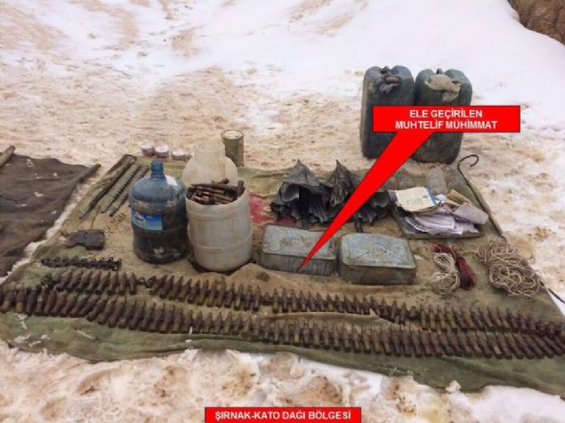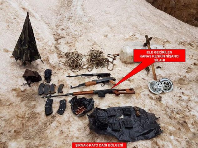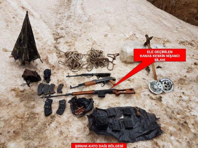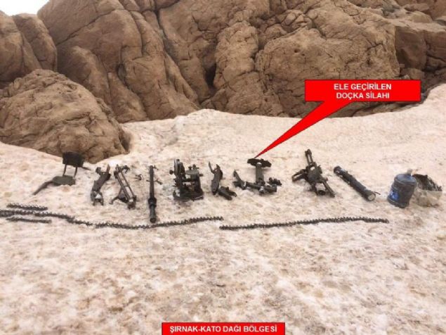 Şırnak'ın Beytüşşebap ilçesinin Kato Dağı bölgesinde güvenlik güçlerince sürdürülen operasyonda PKK'lı teröristlerin kullandığı 22 mağarada çok sayıda silah ele geçirildi.