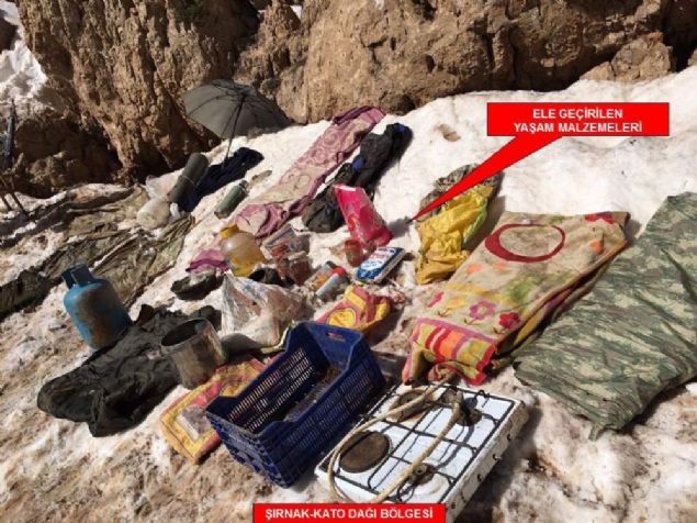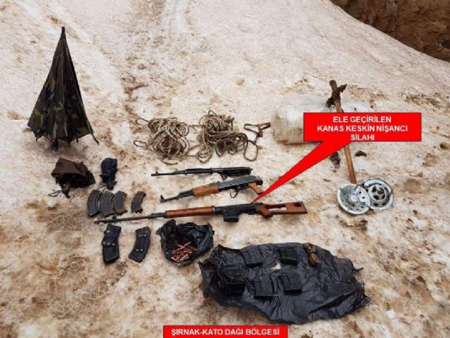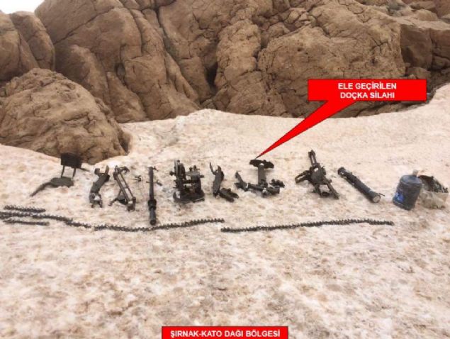 Mağaralarda yapılan aramada, Doçka silahı, 24 el bombası, kanas keskin nişancı tüfeği ve 26 uzun namlulu silah, 3 bin 314 fişek ile çok sayıda yaşam malzemesi ele geçirildi.