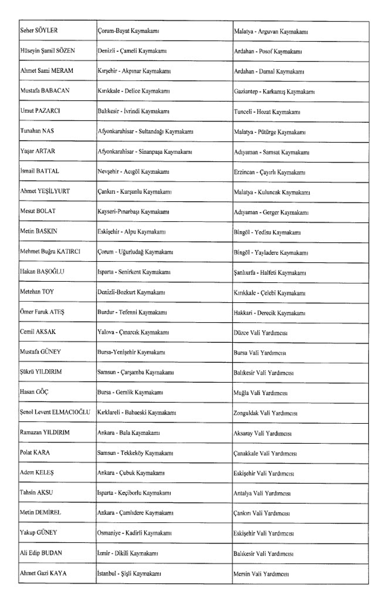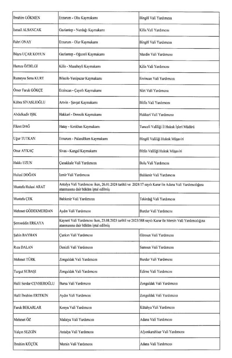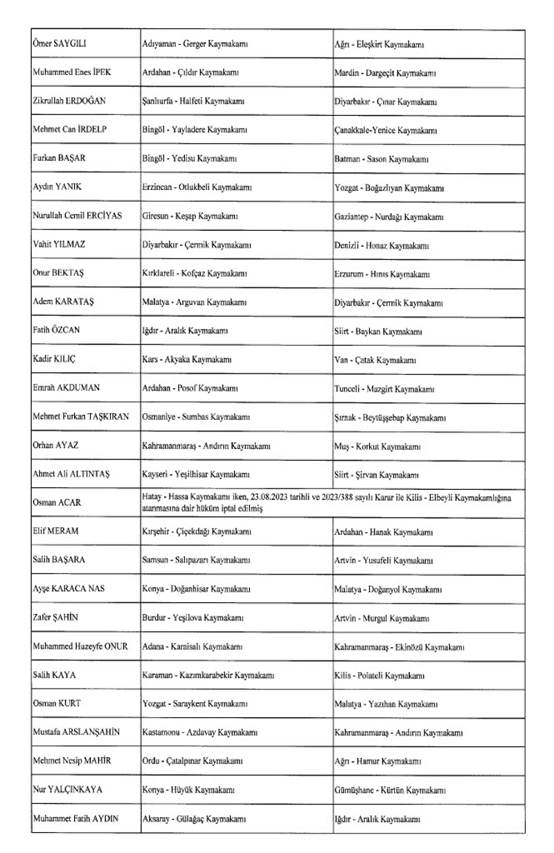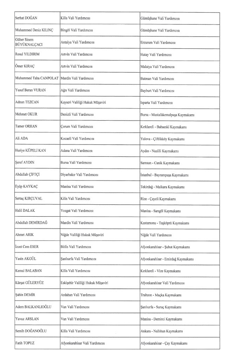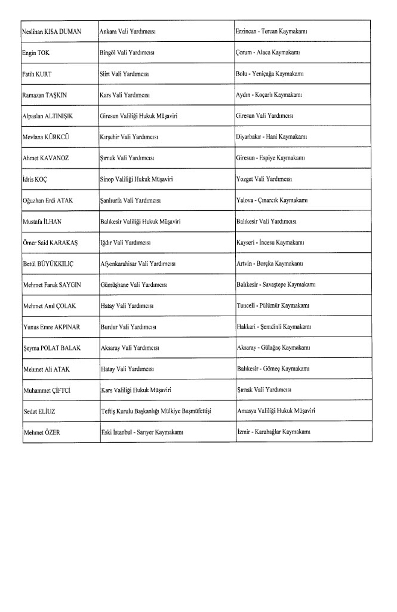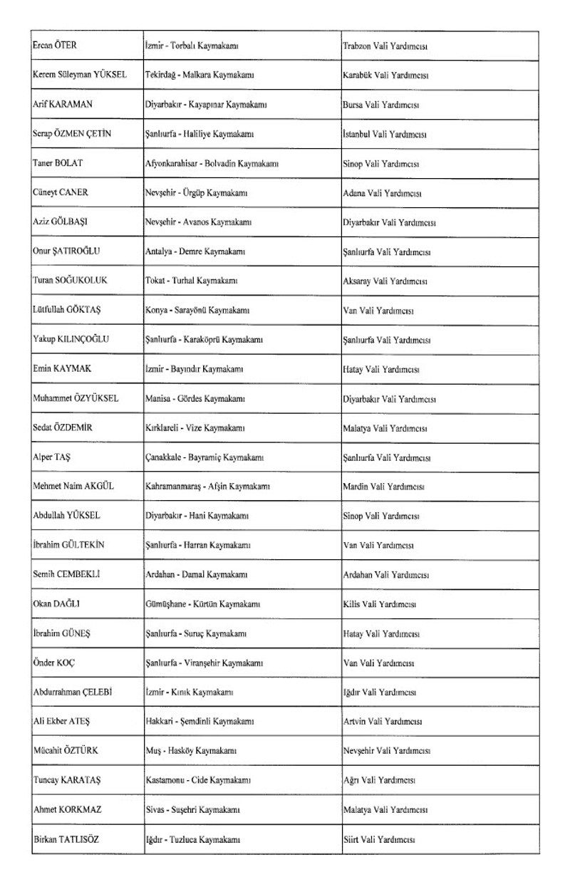 İşte Kaymakamlar kararnamesi ve yapılan atamalar :