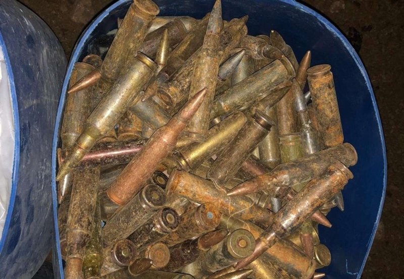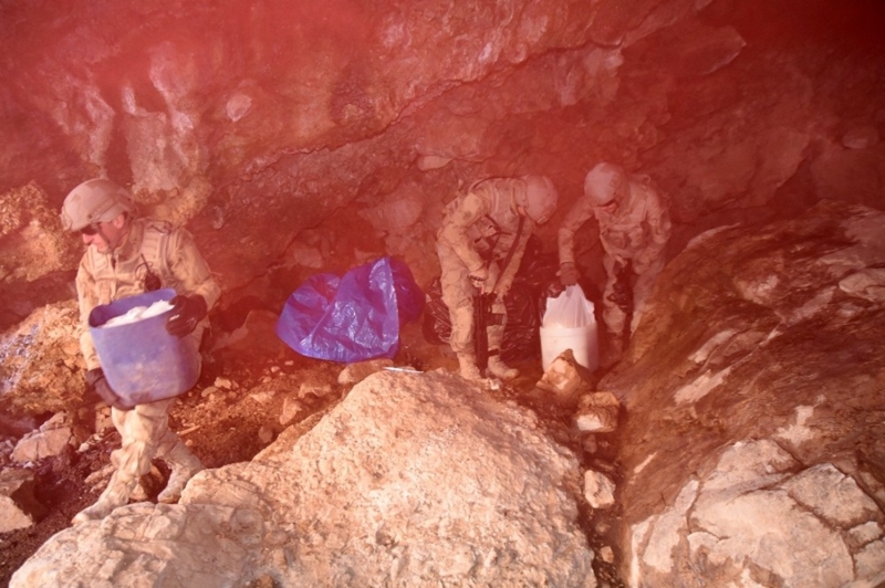 Hakkari'nin Çukurca ilçesi Kazan Vadisi bölgesinde yapılan operasyonda 3 sığınak içerisinde silah ve mühimmat ele geçirildi (İHA)