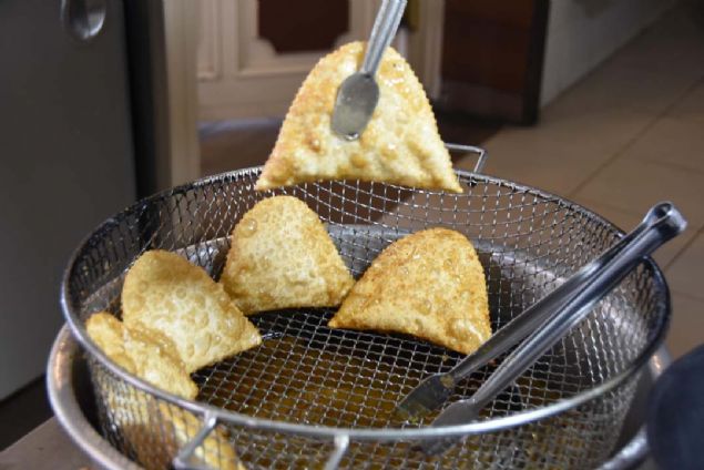 Normalde ağır olur diye korkan ve ilk defa yiyen bir sürü insanlar var. Normalde çok hafiftir. Niye hafiftir çünkü bizim hamurumuz gayet incedir. Çok ince bir hamurun içine bir kaşık kıyma atılır, kızgın yağda 15 ila 20 saniye arasında pişer ve çıkar. Yani bu kadar kısa süre içerisinde pişer ve o su sayesinde buhar içinde hapsolur.