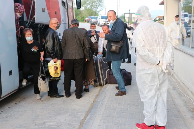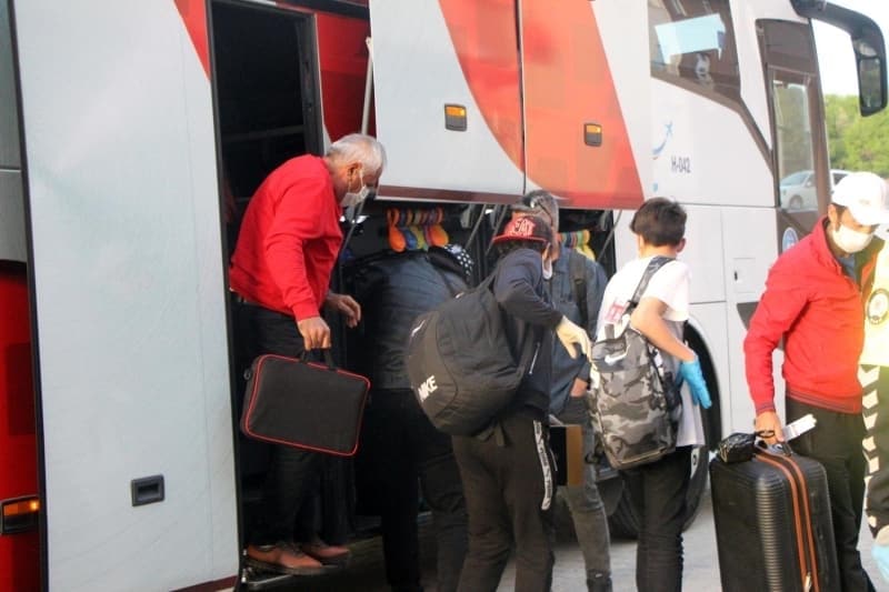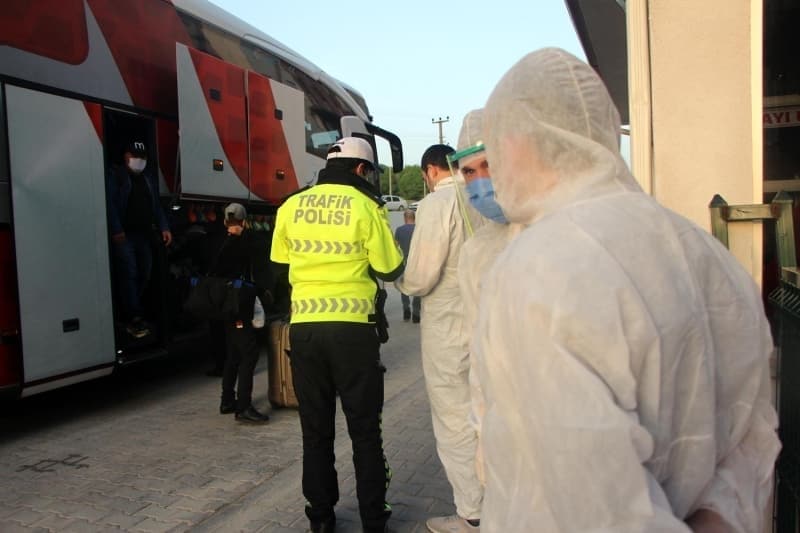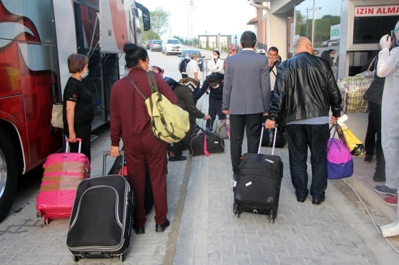 Havalimanında sağlık kontrolleri yapılan vatandaşlar, otobüslerle Bolu'ya ulaştırıldı.