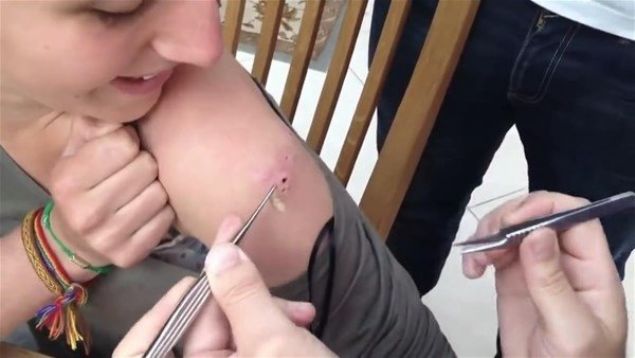 Yaranın içinden çıkan tropikal bölgede yaşayan ve larvalarını deri altına bırakan botfly cinsi sinekti.