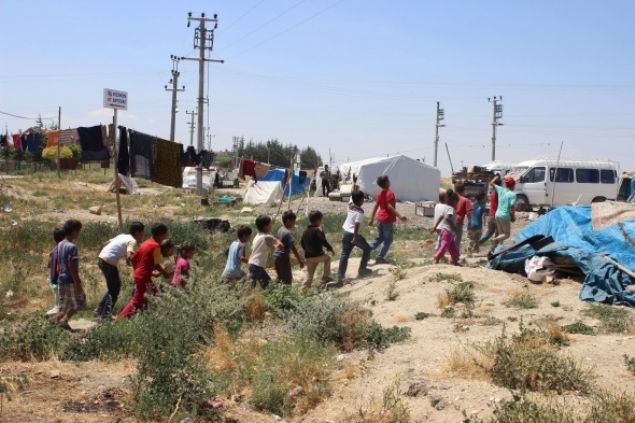 Yaşları 1 ile 8 arasında olan çocuklar da aileleri ile birlikte zor bir mücadelenin içine giriyor. Anne ve babaları tarlada çalıştığı sırada çocuklar ise çadırların bulunduğu bölgede kalıyor.