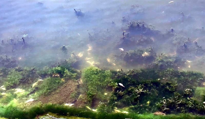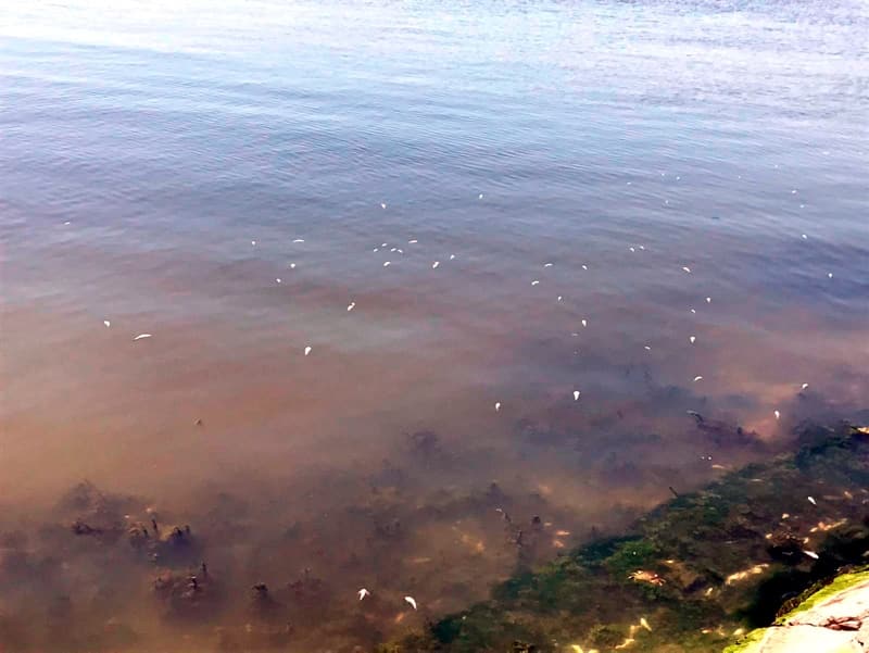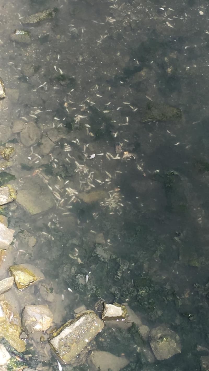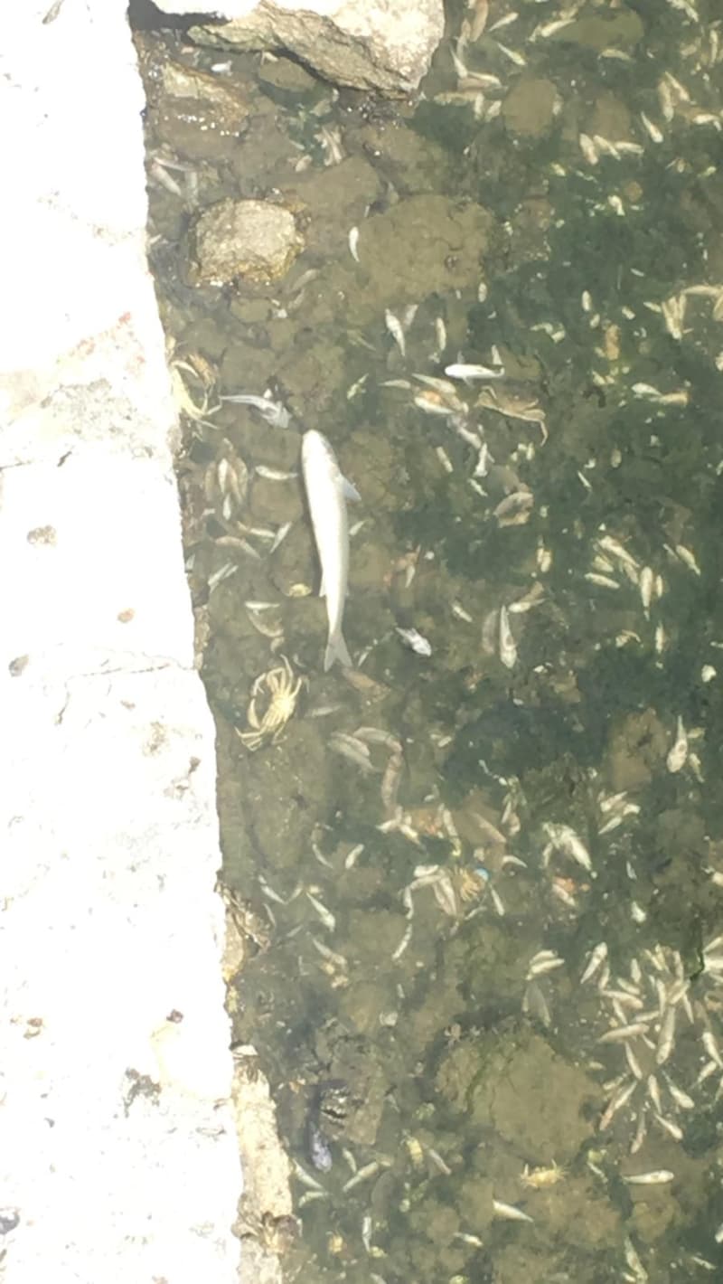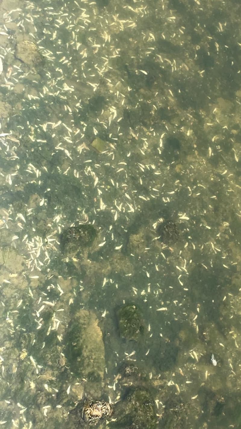 Kıyıda aralarında yengeçlerin de bulunduğu ölü, yarı canlı balıkları gören çevre sakinleri, uzun zamandır böyle bir manzara ile karşılaşmadıklarını söylediler.